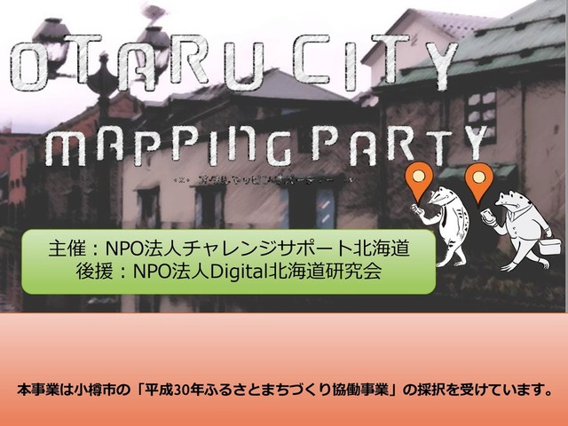 10:30-11:30 インストール・座学 11:30-13:00 マッピング開始・各チーム昼食 13:00-15:00 マッピング(晴れの場合) 13:00-14:00(雨の場合) 15:00-16:00 室内で修正(晴れの場合) 14:00-16:00(雨の場合) お団子配布(15時頃) 16:00-16:30 まとめ、発表 物品 Wi-fiは会議室に据え付けのを使う。一応、念のためWimaxは持ち込む 模造紙・ターゲットエリアのOSMを印刷したもの アンケート