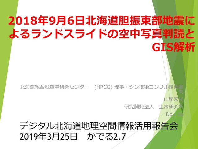2018年9月6日北海道胆振東部地震に よるランドスライドの空中写真判読と GIS解析 北海道総合地質学研究センター (HRCG) 理事・シン技術コンサル技術顧 問 山岸宏光 研究開発法人 土木研究所