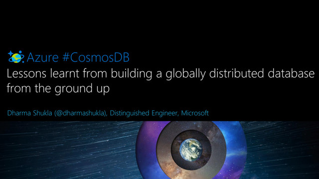 an afterthought while building a cloud database Schema agnostic database engine design is crucial for a globally distributed database Intermediate consistency models are extremely useful A globally distributed database must provide comprehensive SLAs beyond just high availability Throughput, latency at 99th percentile, consistency and high availability Lessons learned