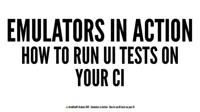 of specific screen ▸ Run them with ./gradlew cAT ▸ Is this enough? ▸ Yes...but! 11 — droidConPL Krakow 2017 - Emulators in Action - How to run UI tests on your CI