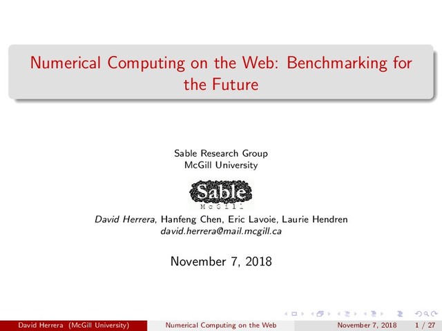 Recent advances in execution environments for JavaScript and WebAssembly that run on a broad range of devices, from workstations and mobile phones to IoT devices, provide new opportunities for portable and web-based numerical computing. Indeed, numerous numerical libraries and applications are emerging on the web, including Tensorflow.js, JSMapReduce, and the NLG Protein Viewer. This paper evaluates the current performance of numerical computing on the web, including both JavaScript and WebAssembly, over a wide range of devices from workstations to IoT devices. We developed a new benchmarking approach, which allowed us to perform centralized benchmarking, including benchmarking on mobile and IoT devices. Using this approach we performed four performance studies using the Ostrich benchmark suite, a collection of numerical programs representing the numerical dwarf categories identified by Colella. We studied the performance evolution of JavaScript, the relative performance of WebAssembly, the performance of server-side Node.js, and a comprehensive performance showdown for a wide range of devices.