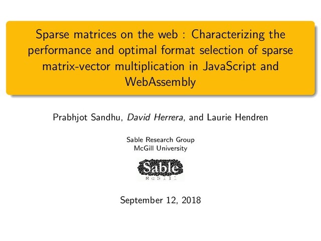 JavaScript is the most widely used language for web programming, and now increasingly becoming popular for high performance computing, data-intensive applications, and deep learning. More recently, WebAssembly has been introduced as a typed low-level bytecode representation which promises to enable better performance. Sparse matrix-vector multiplication (SpMV) is an important kernel that is considered critical for the performance of compute-intensive applications. In SpMV, the optimal selection of storage format is one of the key aspects of enabling the best performance.
