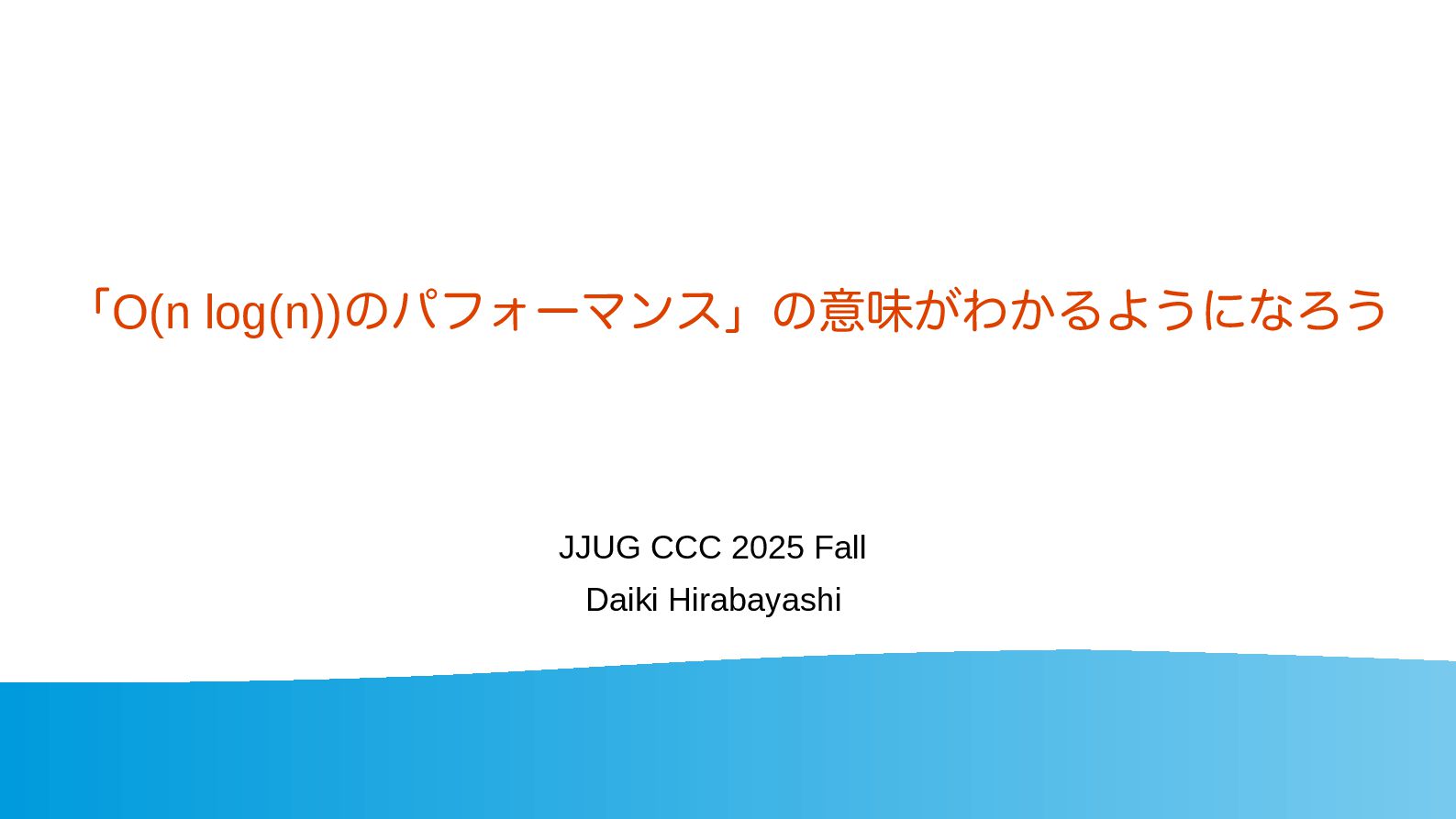 「O(n log(n))のパフォーマンス」の意味がわかるようになろう JJUG CCC 2025 Fall Daiki Hirabayashi