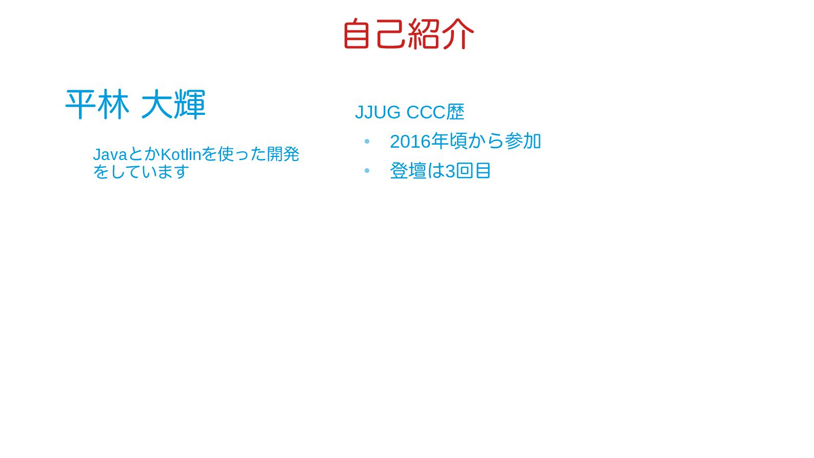 2 自己紹介 平林 大輝 JJUG CCC歴 • 2016年頃から参加 • 登壇は3回目