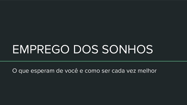 EMPREGO DOS SONHOS O que esperam de você e como