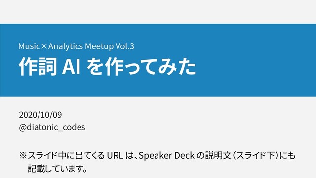 Music×Analytics Meetup Vol.3(2020年10月9日開催)の発表スライドです。