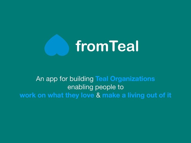 program for creating Teal Organizations: autonomous teams working without any power hierarchy to deliver value to customers • fromTeal basically facilitates the creation & management of Teal Organizations from their inception to their graduation as successful companies