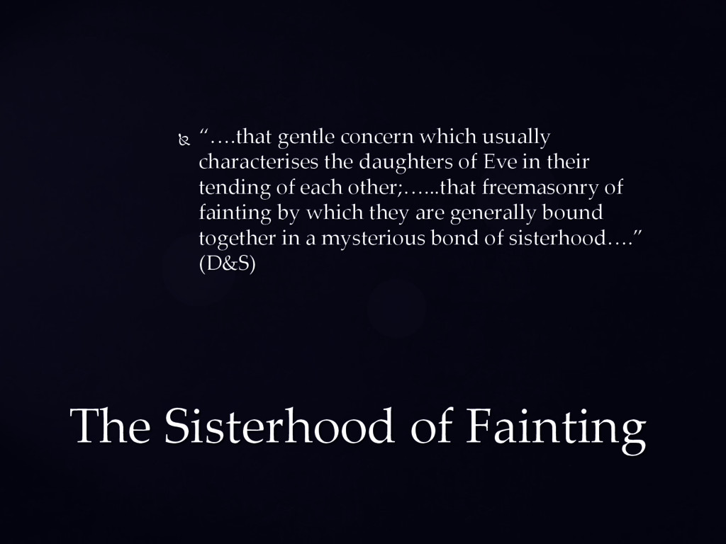 Eve in their tending of each other;…...that freemasonry of fainting by which they are generally bound together in a mysterious bond of sisterhood….” (D&S) The Sisterhood of Fainting
