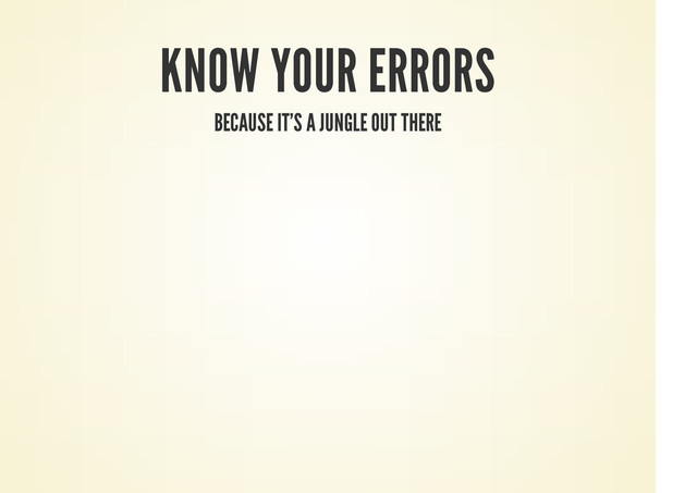 JS errors, they come from browsers. In various forms, languages and if they are happening in a customer you don't see them. We have a jungle of browsers out there, between desktop, mobile, tablets, tv's etc. Different flavors with the same pain in the end. Log your JS errors, adding stack trace information for them using stacktrace.js. And a small dashboard to look into it. Presented @ #fronttrends 2013