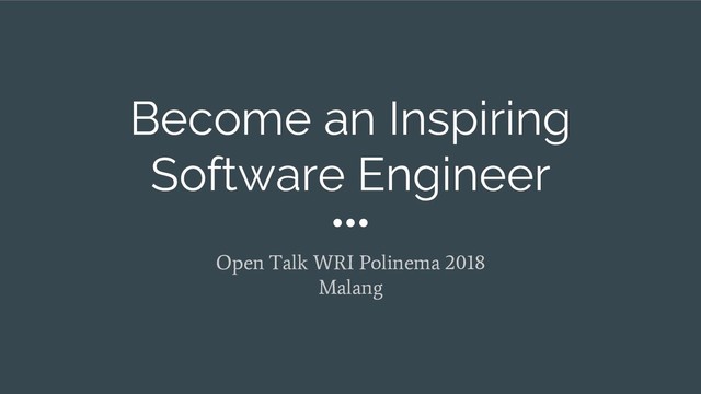 This is my talk at Open Talk event by Workshop Riset Informatika Politeknik Negeri Malang. In this slide i am covering about general step how to be an inspiring software engineer.