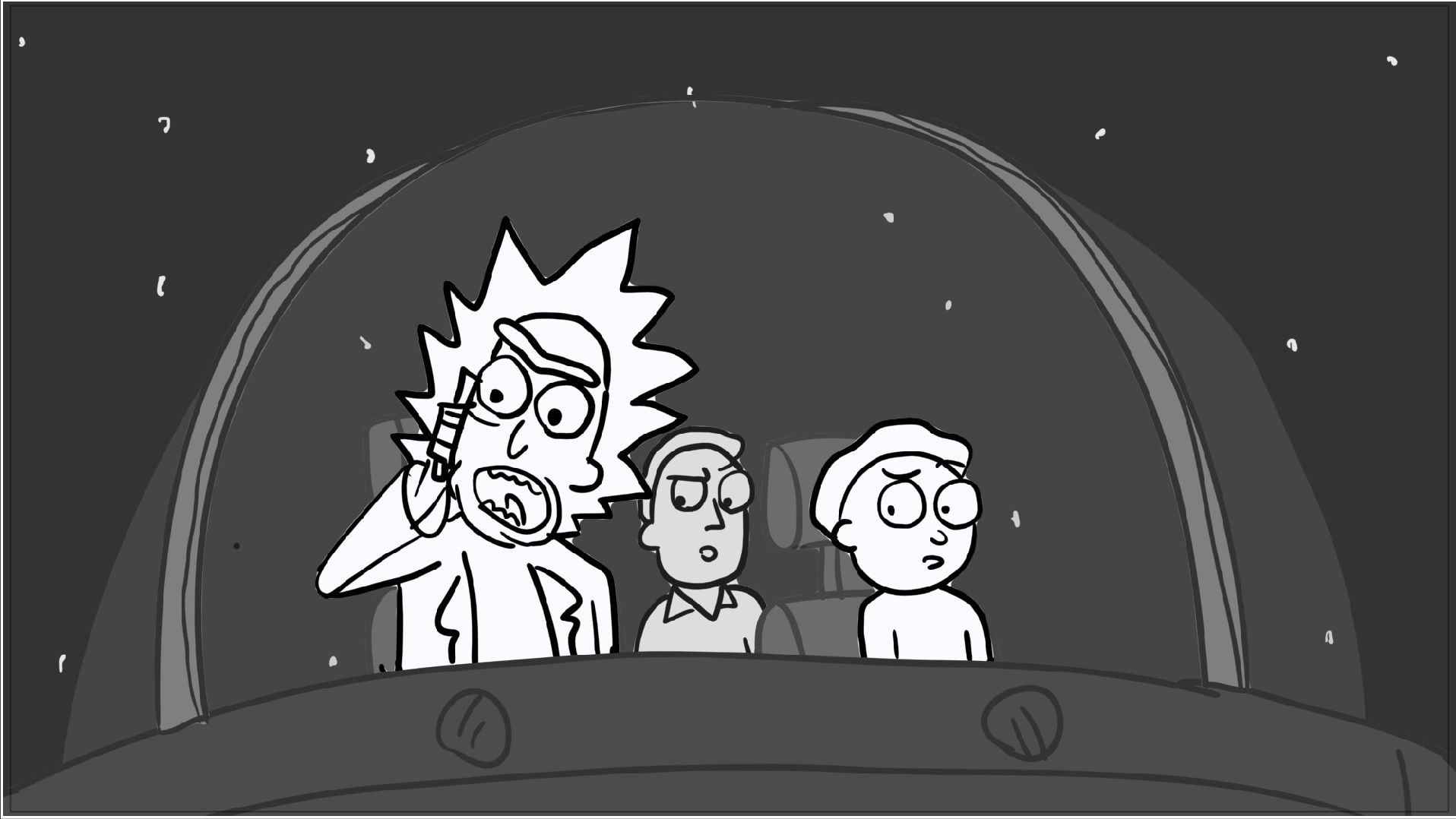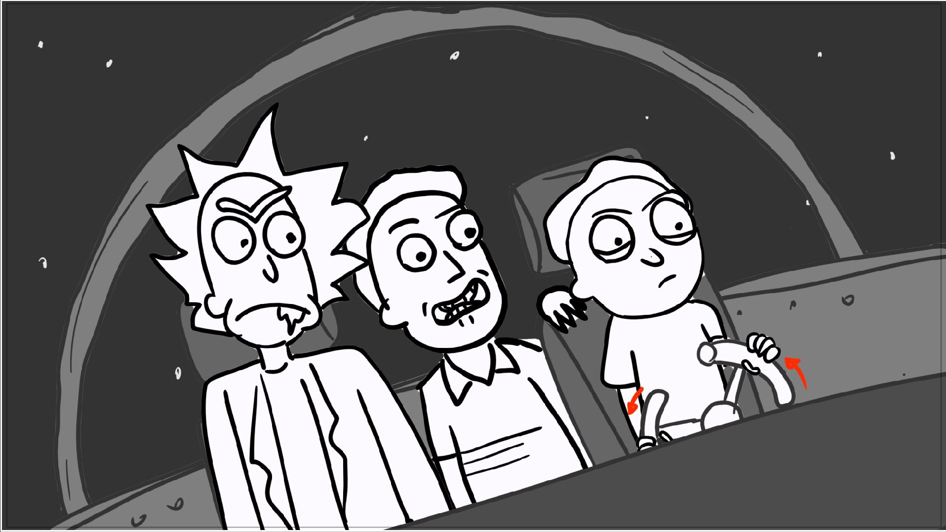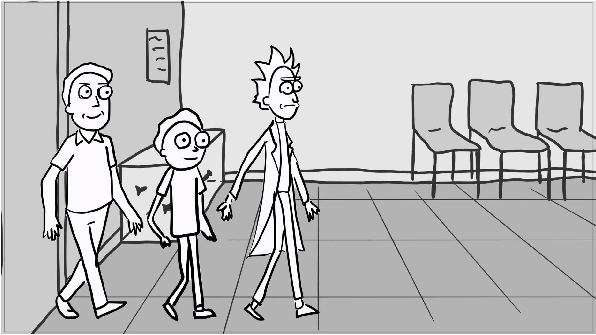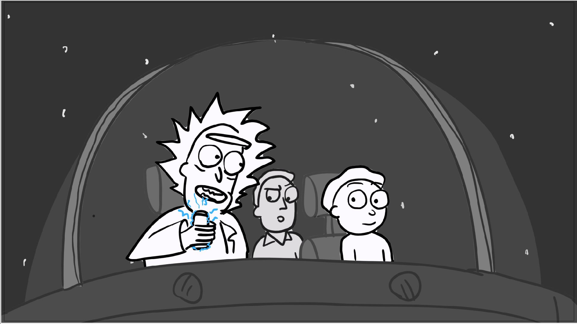 A tribute storyboard recreating the first scenes of Rick and Morty – Morty Night Run.