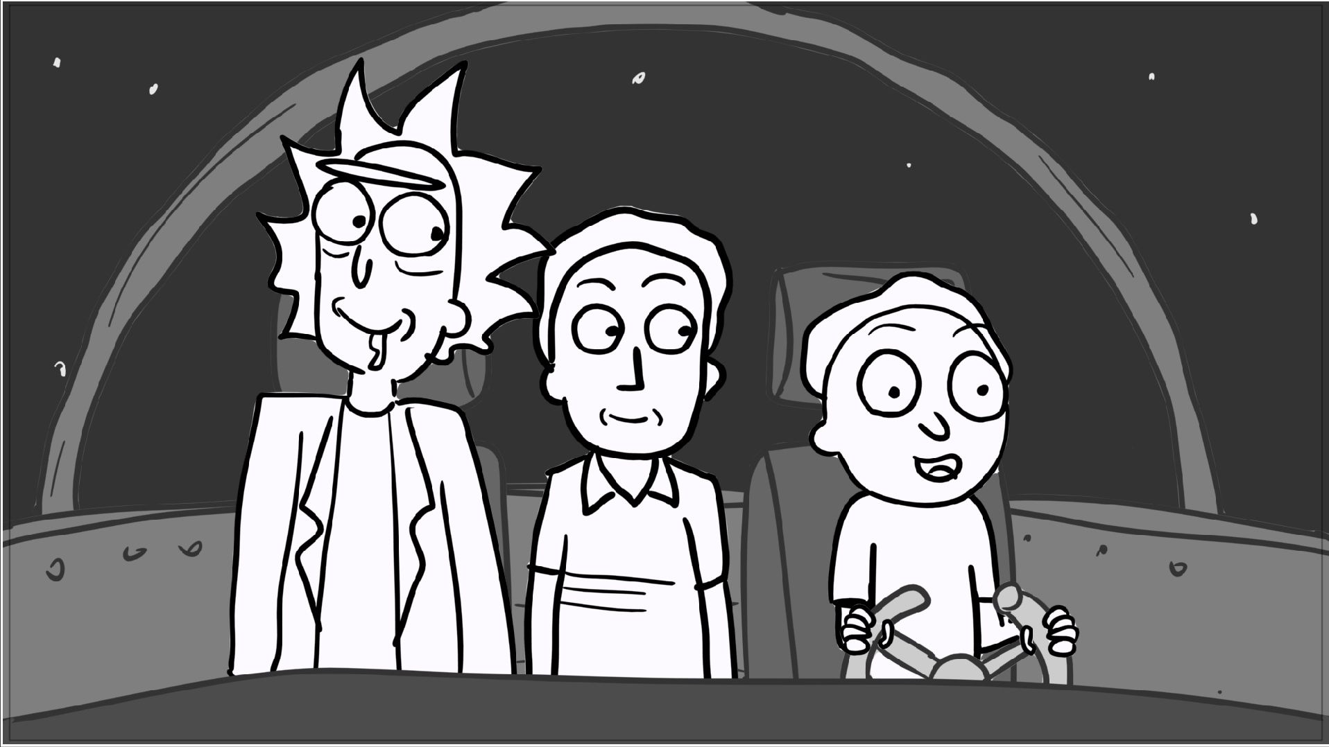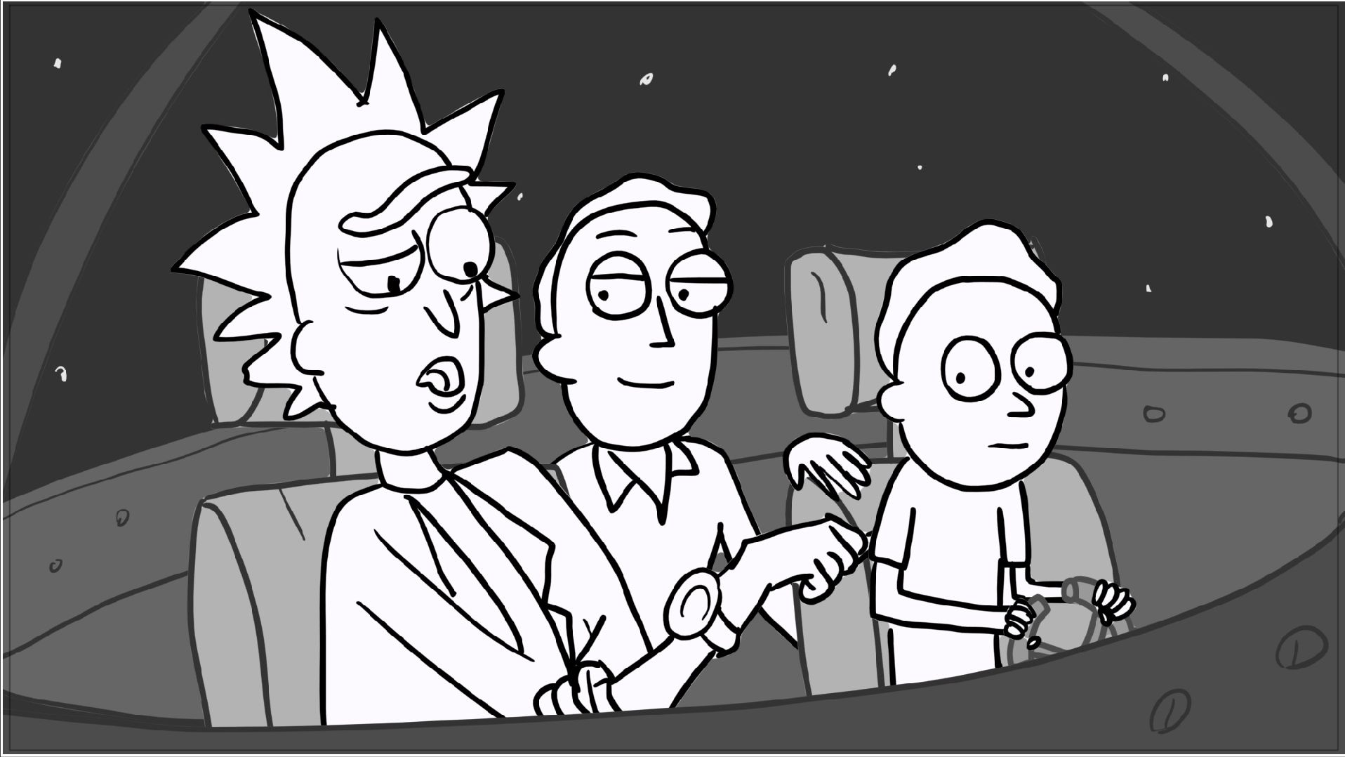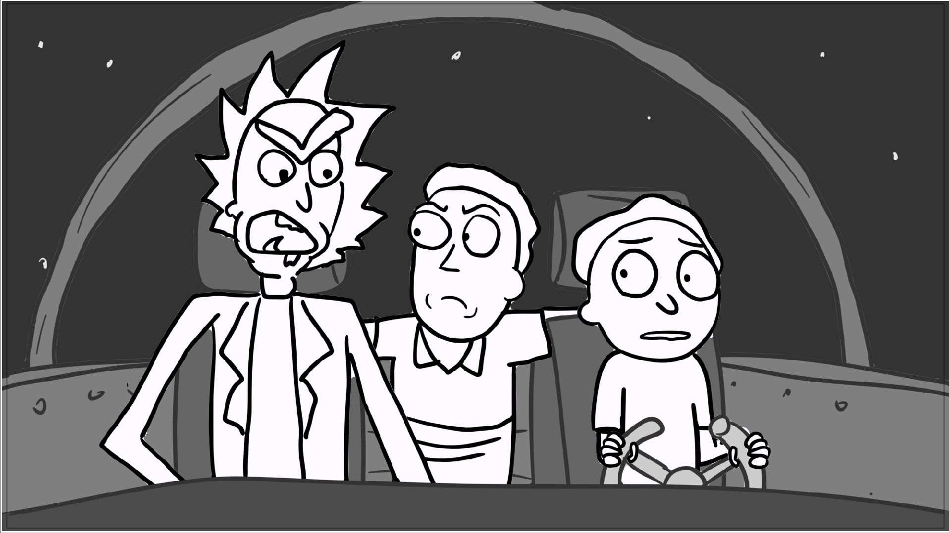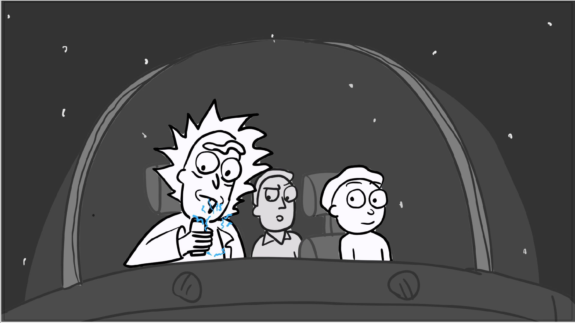 A tribute storyboard recreating the first scenes of Rick and Morty – Morty Night Run.