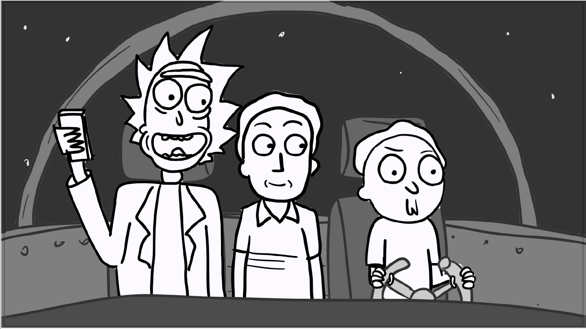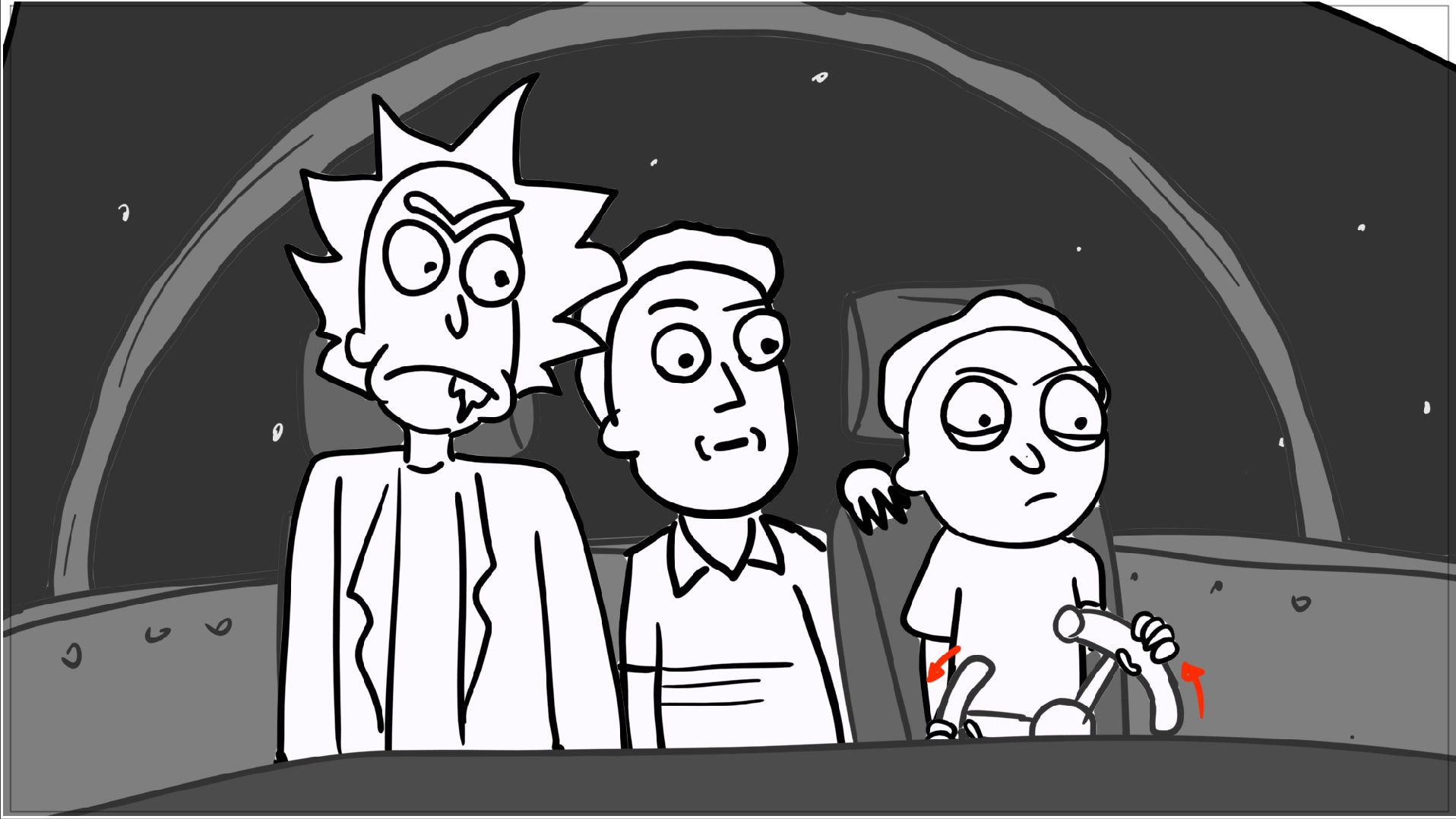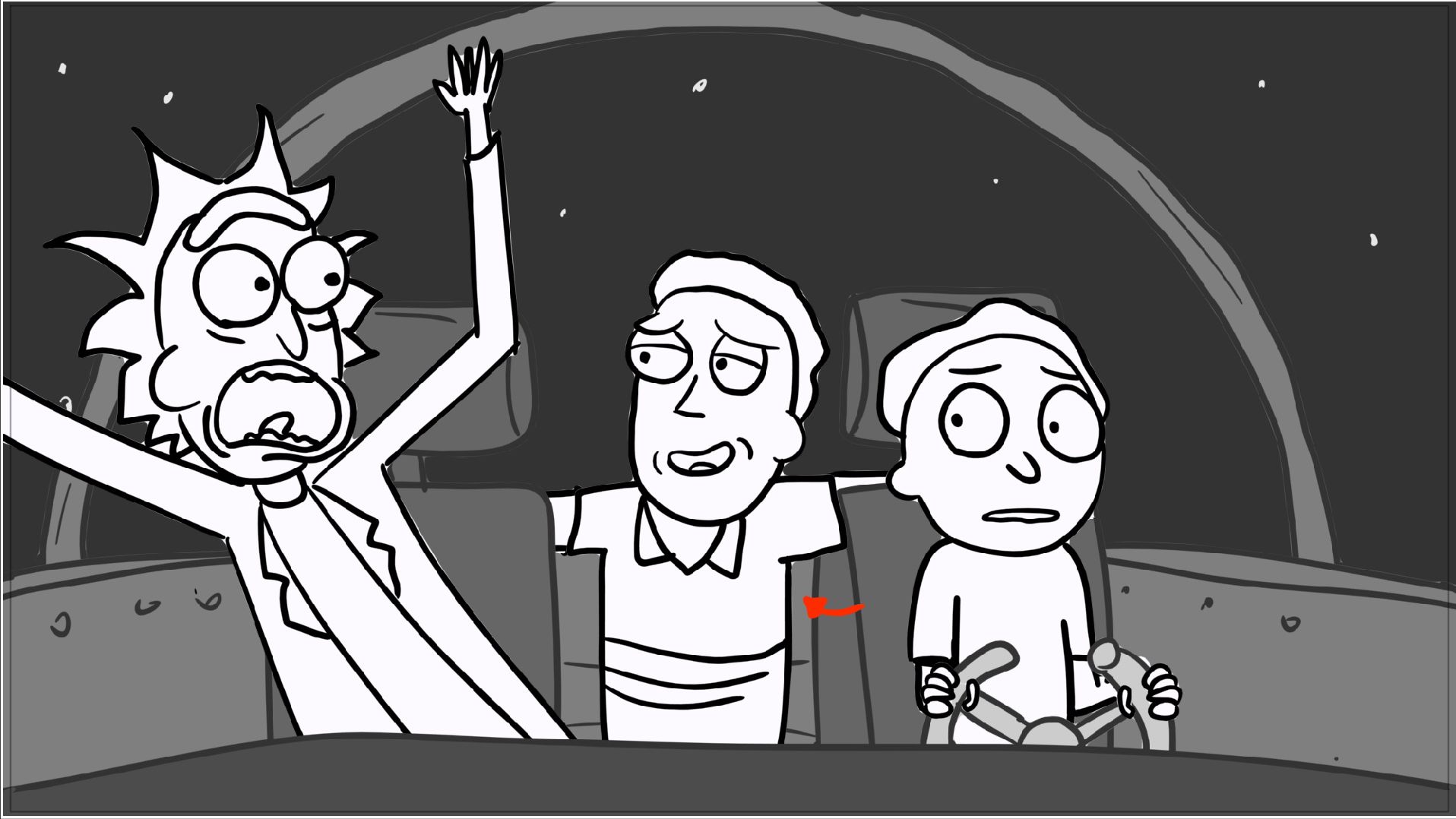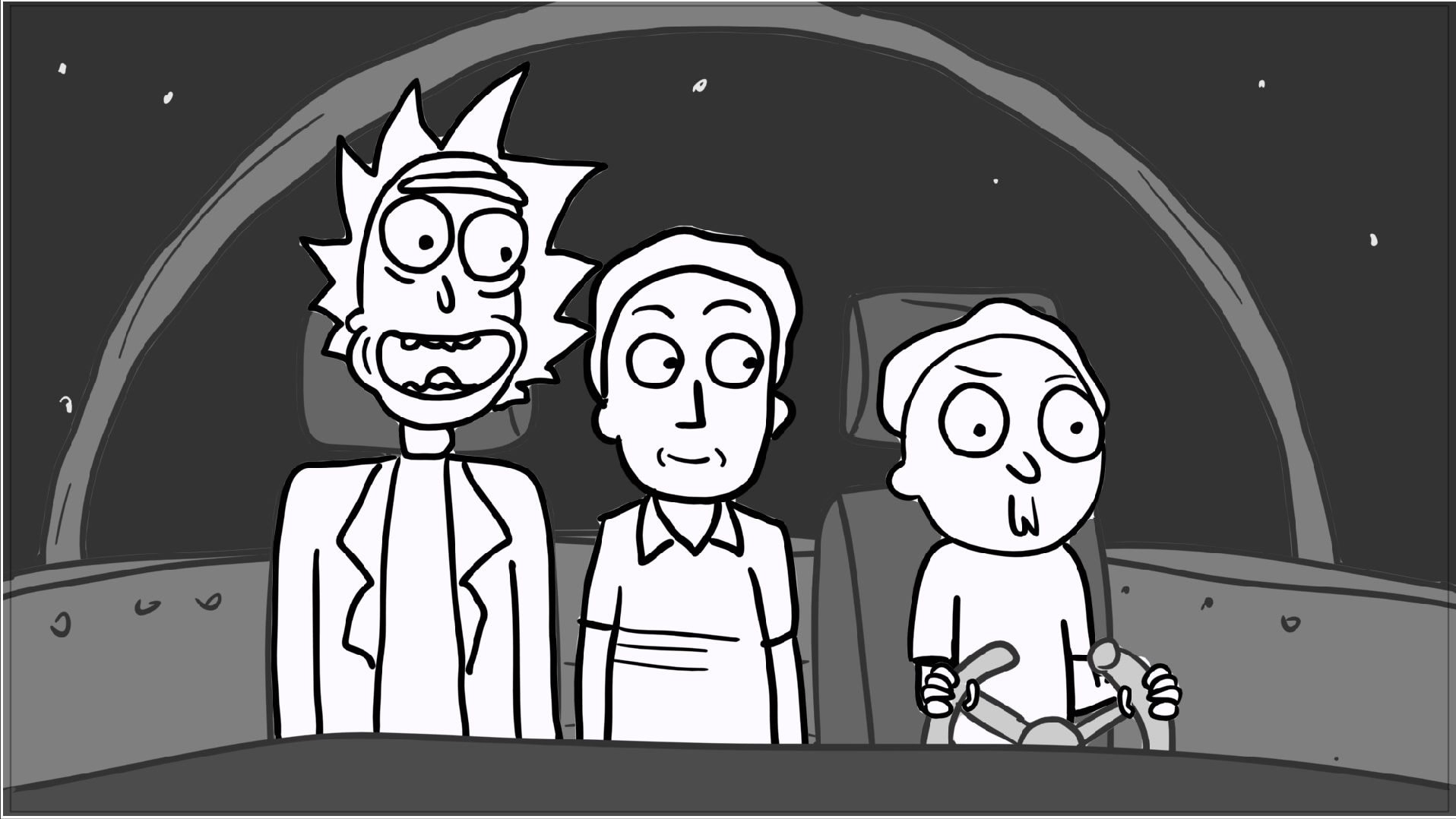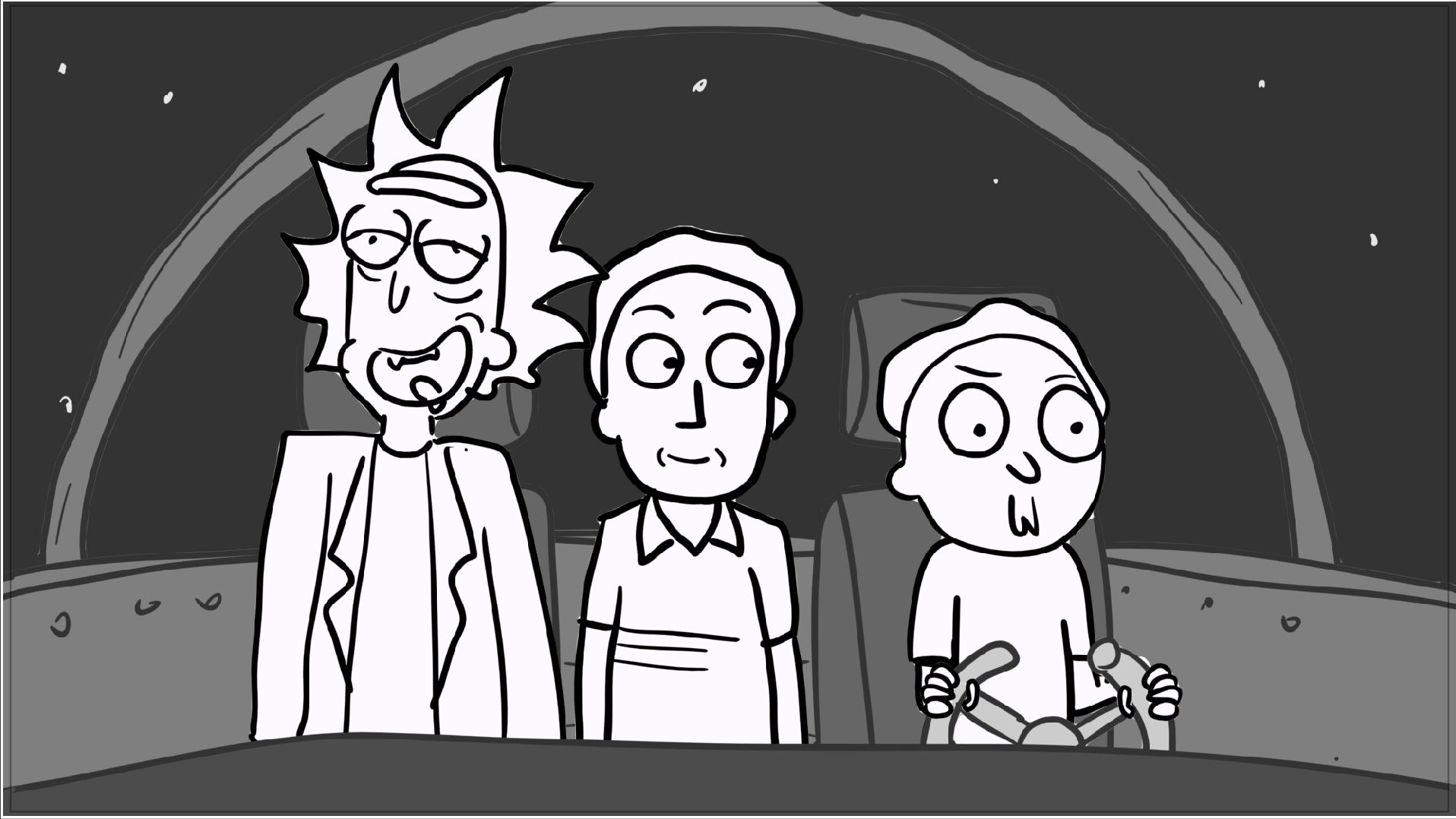 A tribute storyboard recreating the first scenes of Rick and Morty – Morty Night Run.