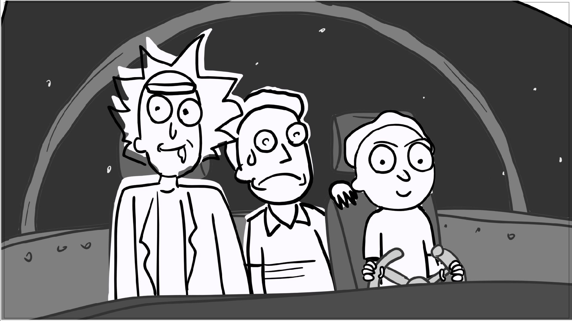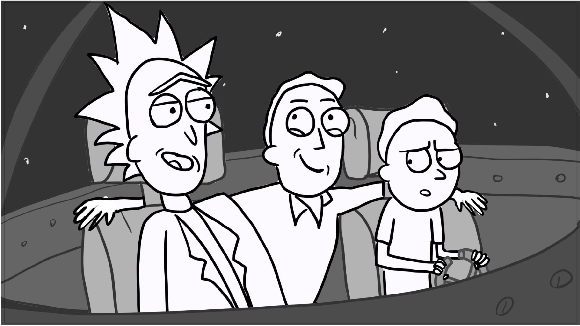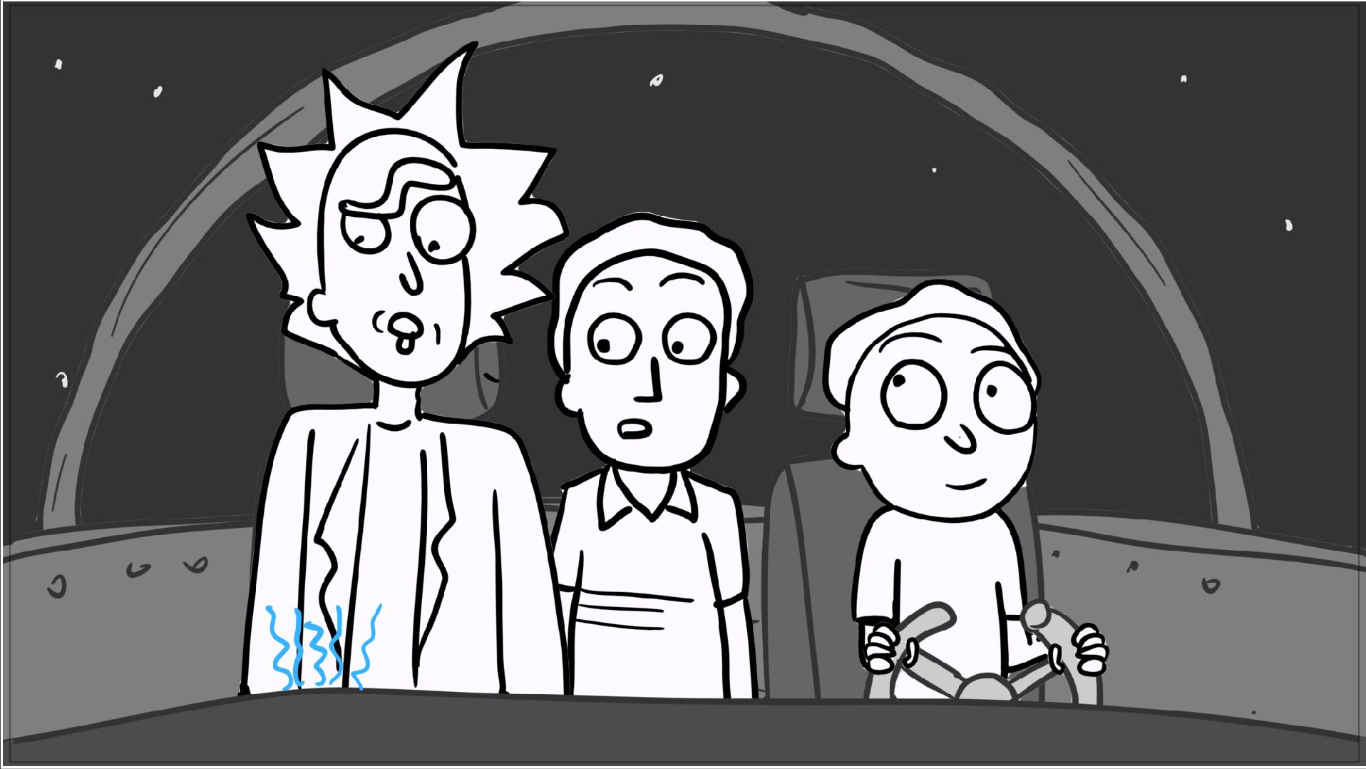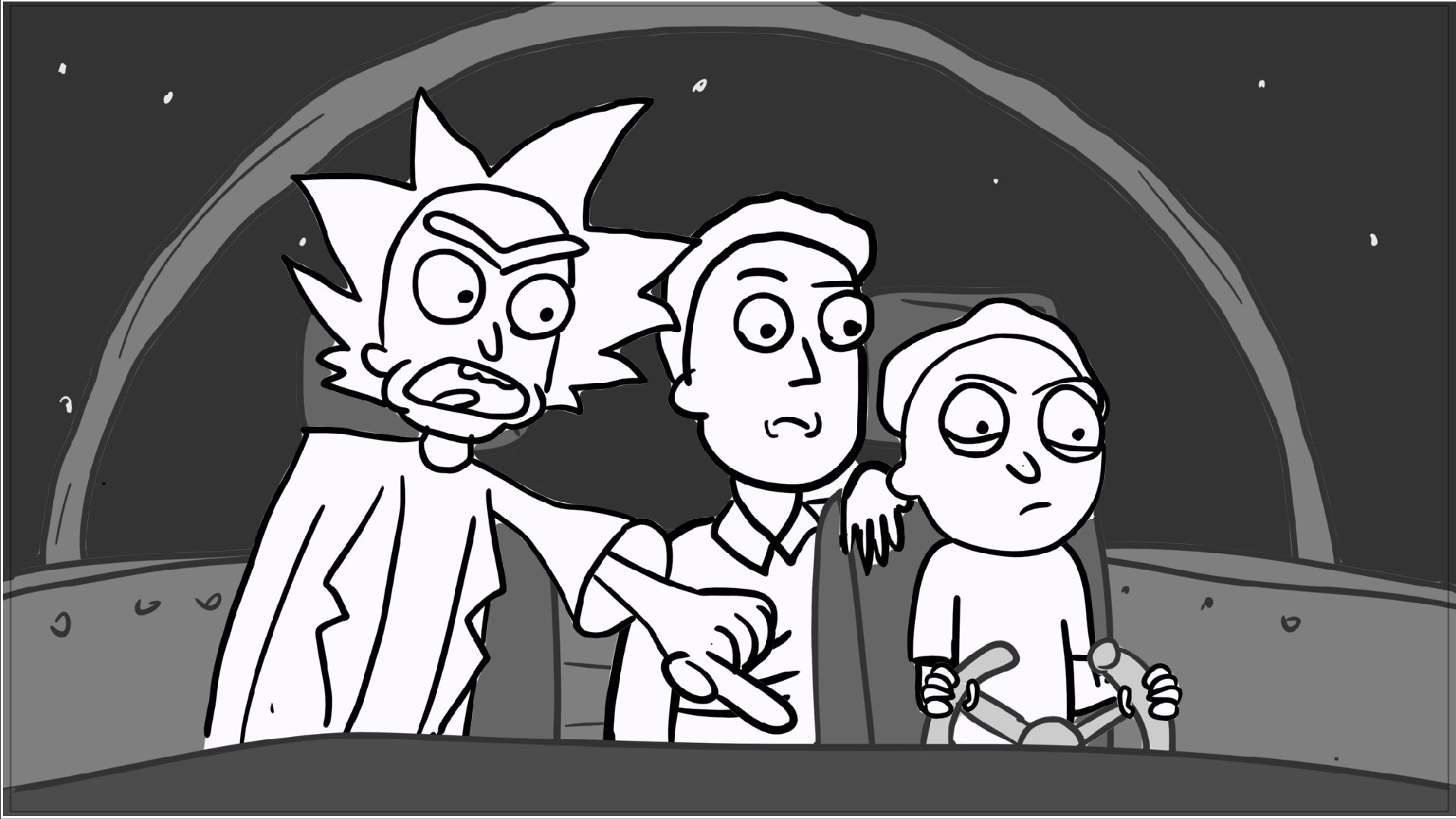 A tribute storyboard recreating the first scenes of Rick and Morty – Morty Night Run.