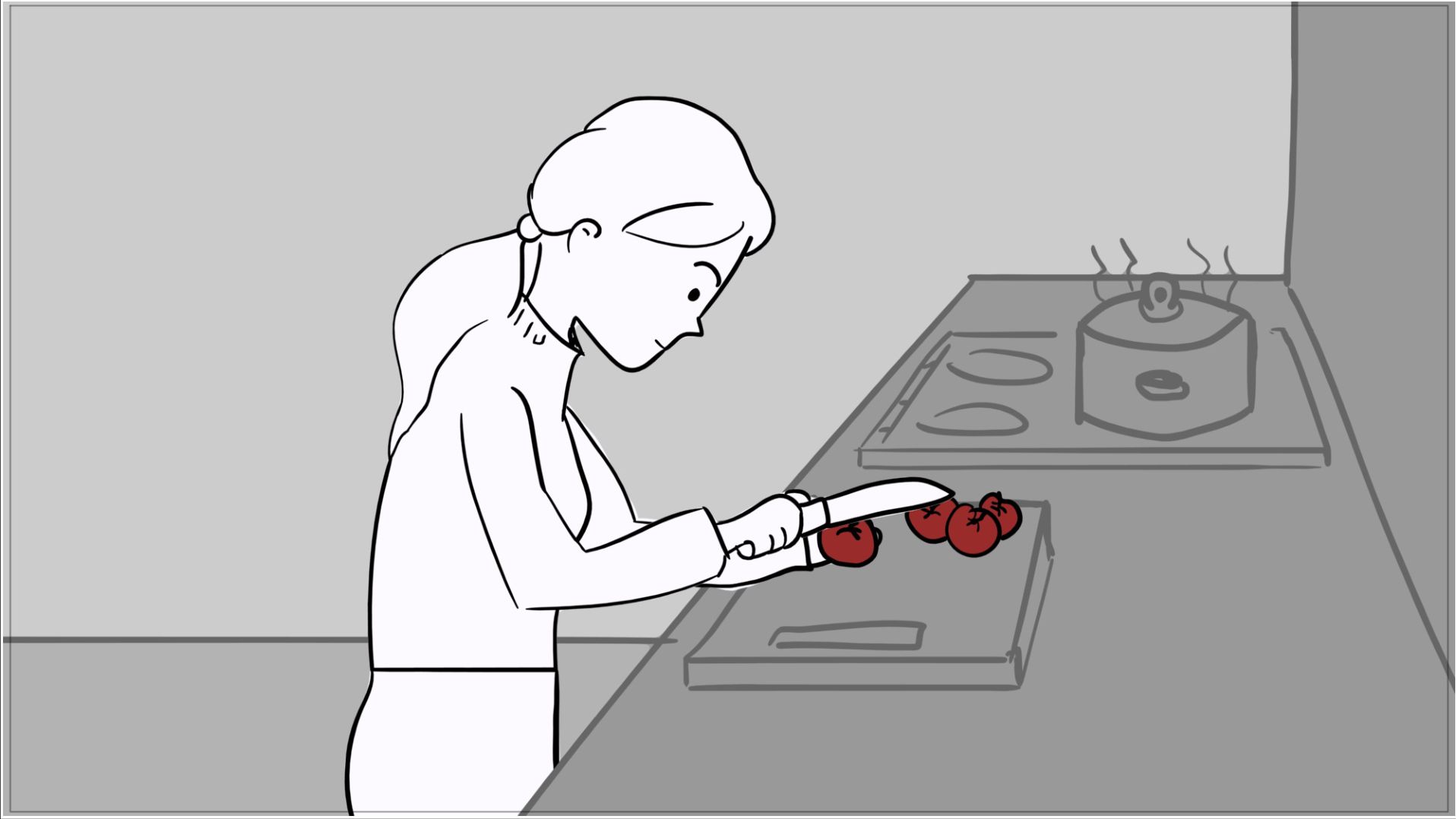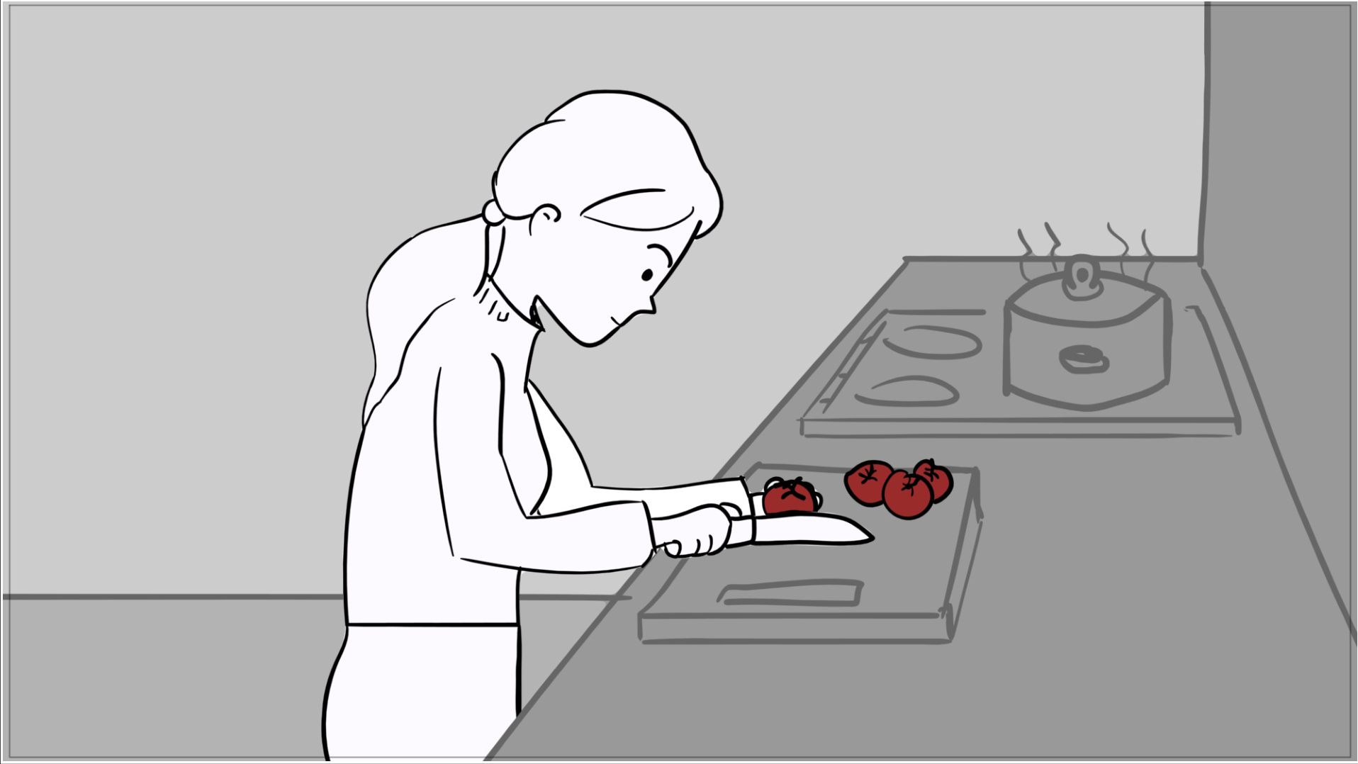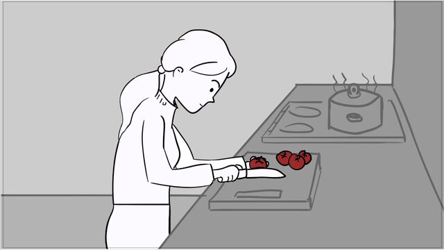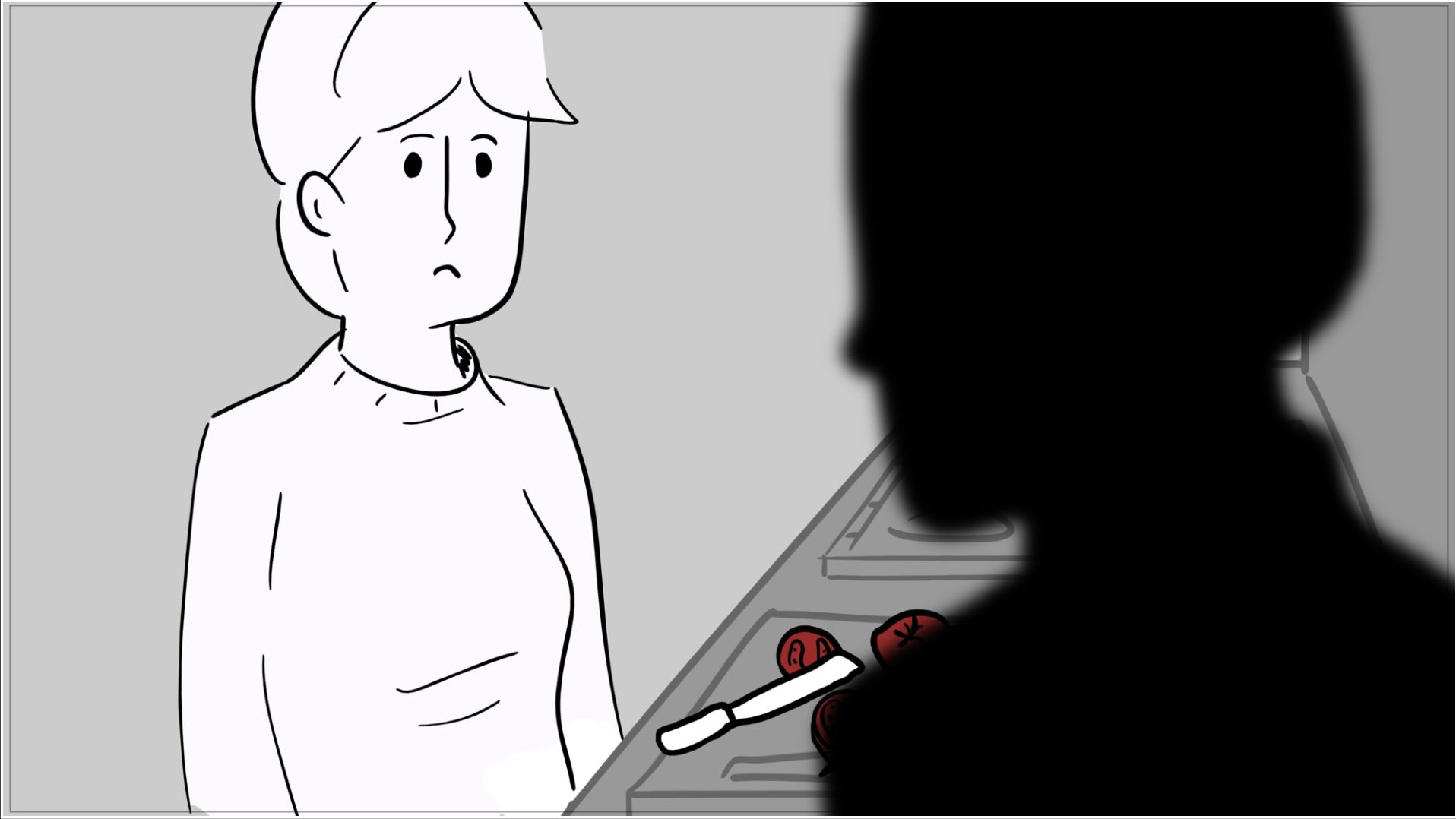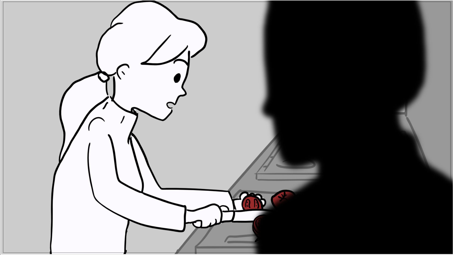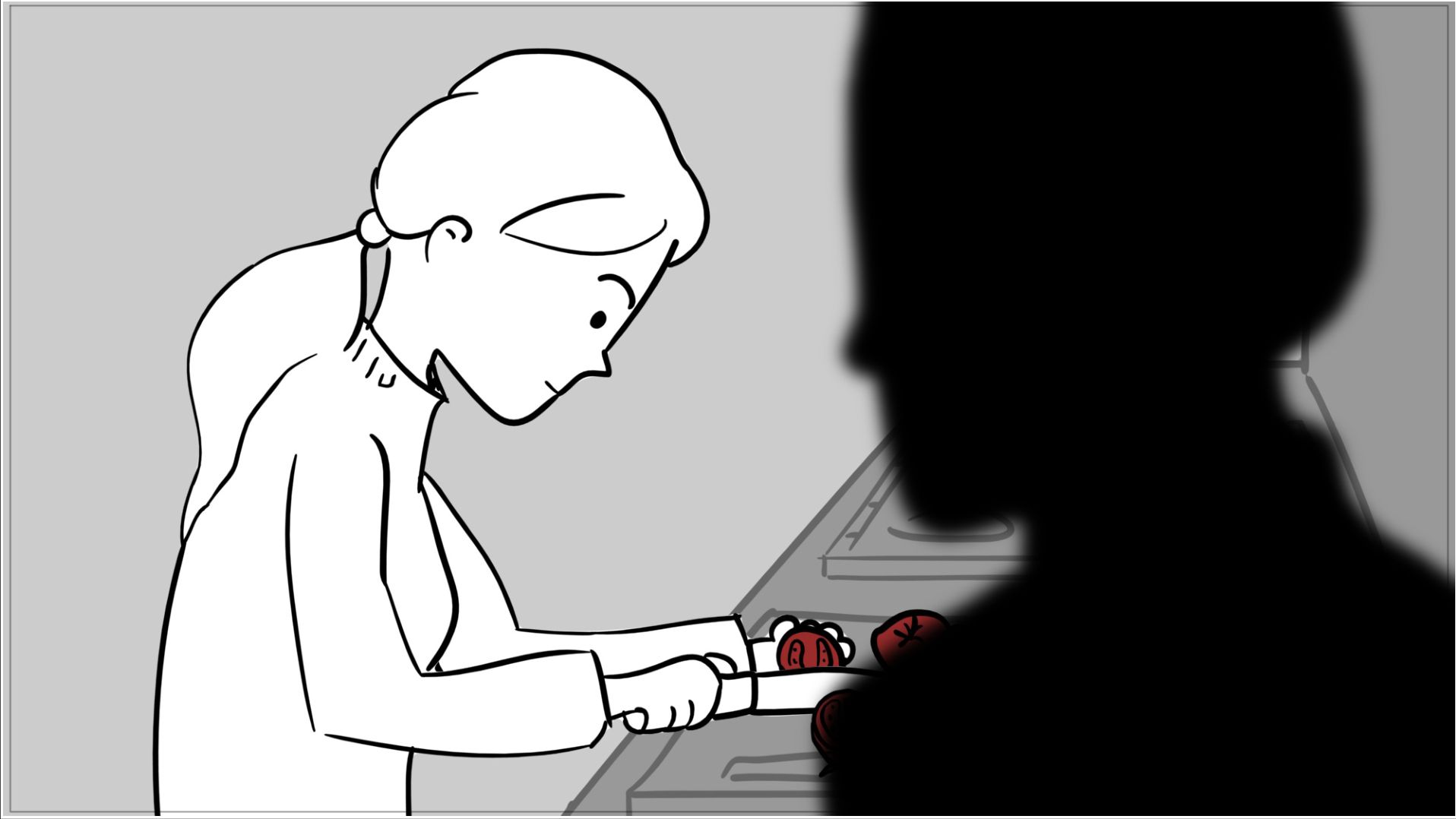 A short scene where the red of a tomato melts into the red of blood; for this woman, an apology is no longer enough.