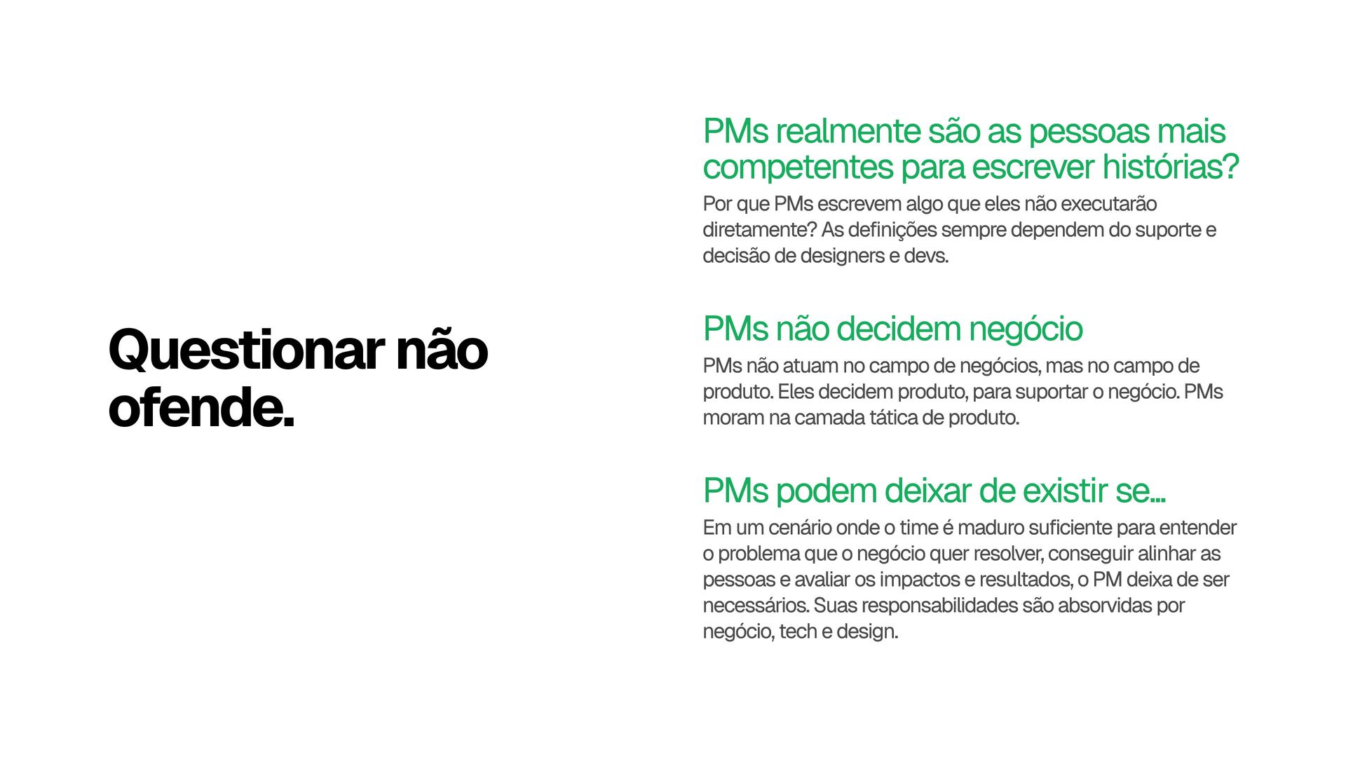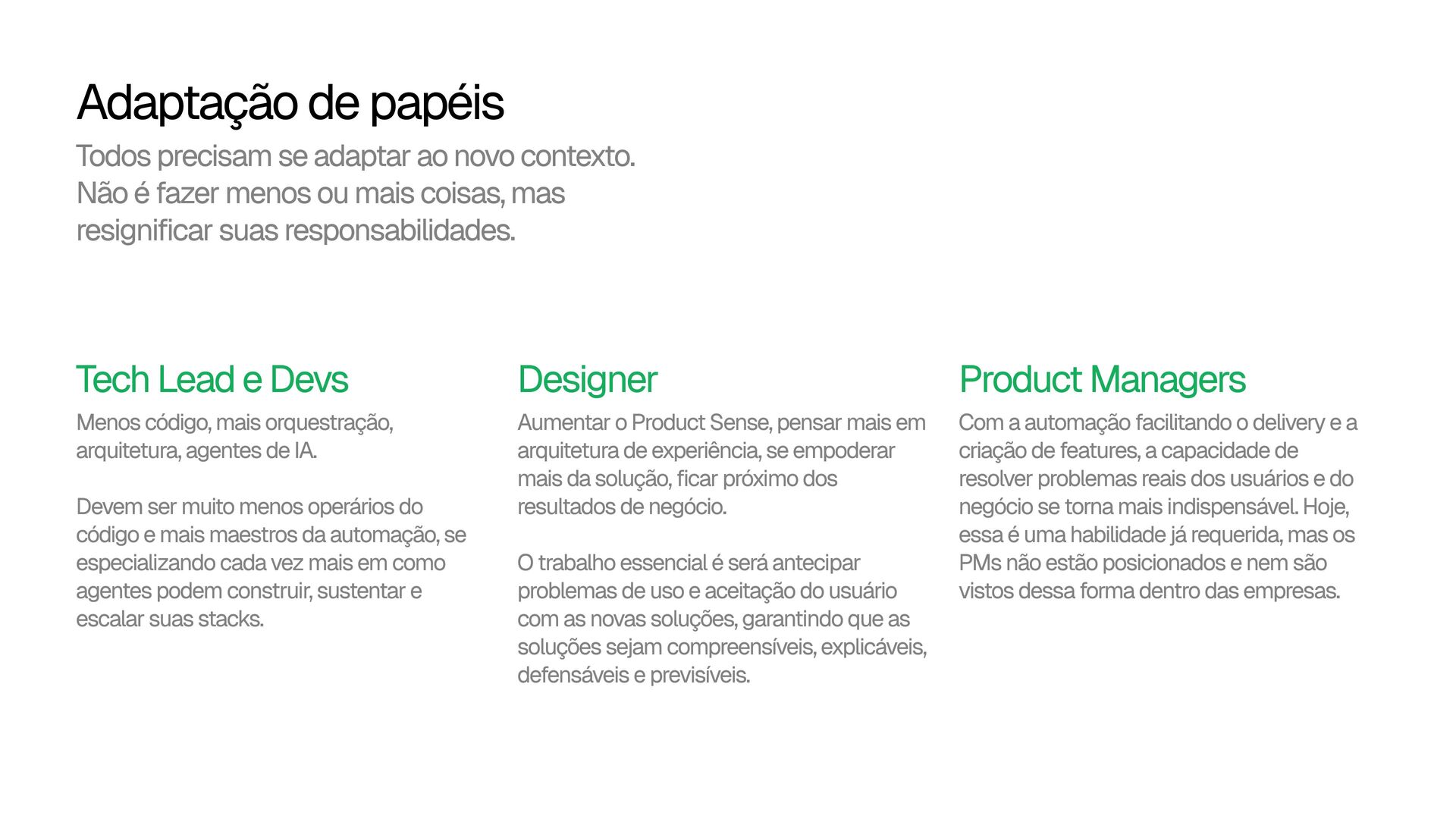 Não é uma mudança que acontece apenas com desenvolvedores, mas o papel dos PMs e também de Designers mudam drasticamente.