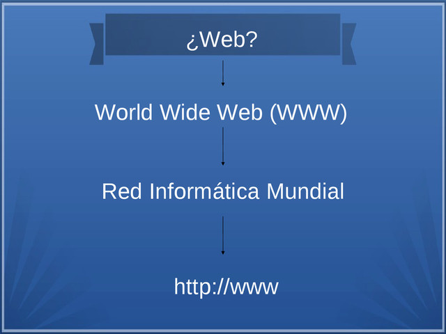 ¿Web? World Wide Web (WWW) Red Informática Mundial http://www