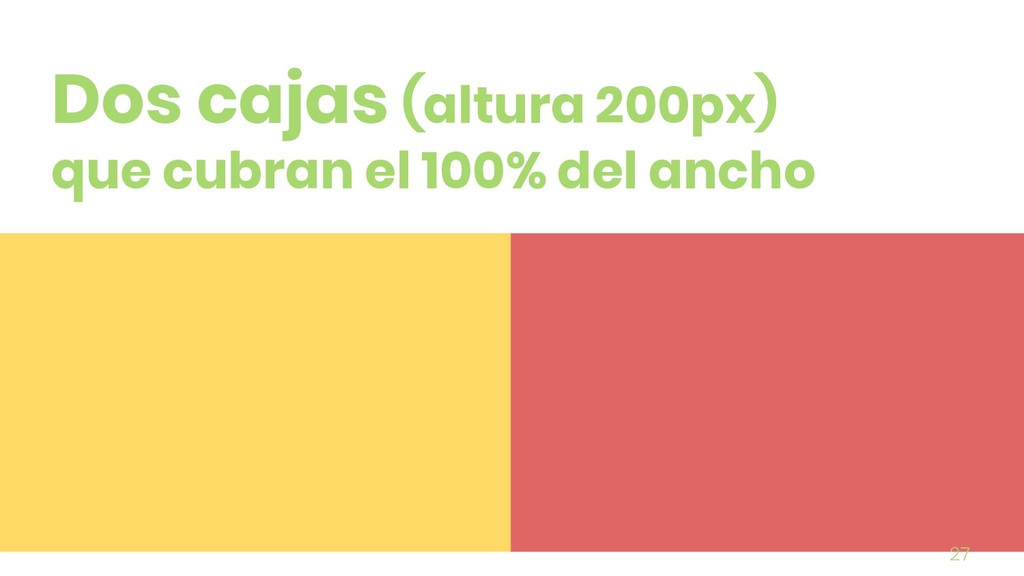 row (o column) • justify-content: flex-start (o flex-end, center, space-between, space-around and space-evenly) • align-items: flex-start (o flex-end, center, stretch, ...) pro-tip: jugar “flexbox zombies”