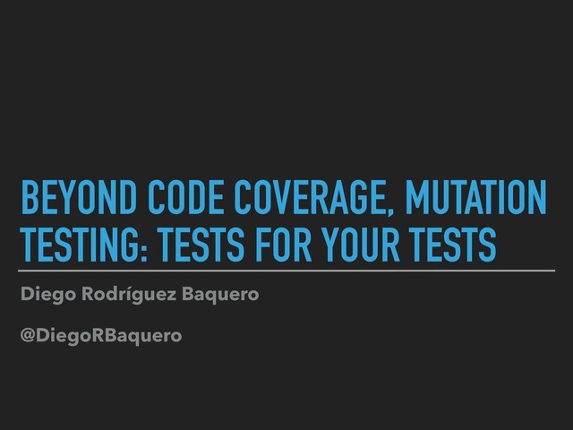 to assess test suite effectiveness ▸ 100% statement/branch/function coverage is not enough ▸ Inserts faults that resemble real world bugs ▸ Mutants ▸ Runs your test suite ▸ Did your test suite catch the mutant?