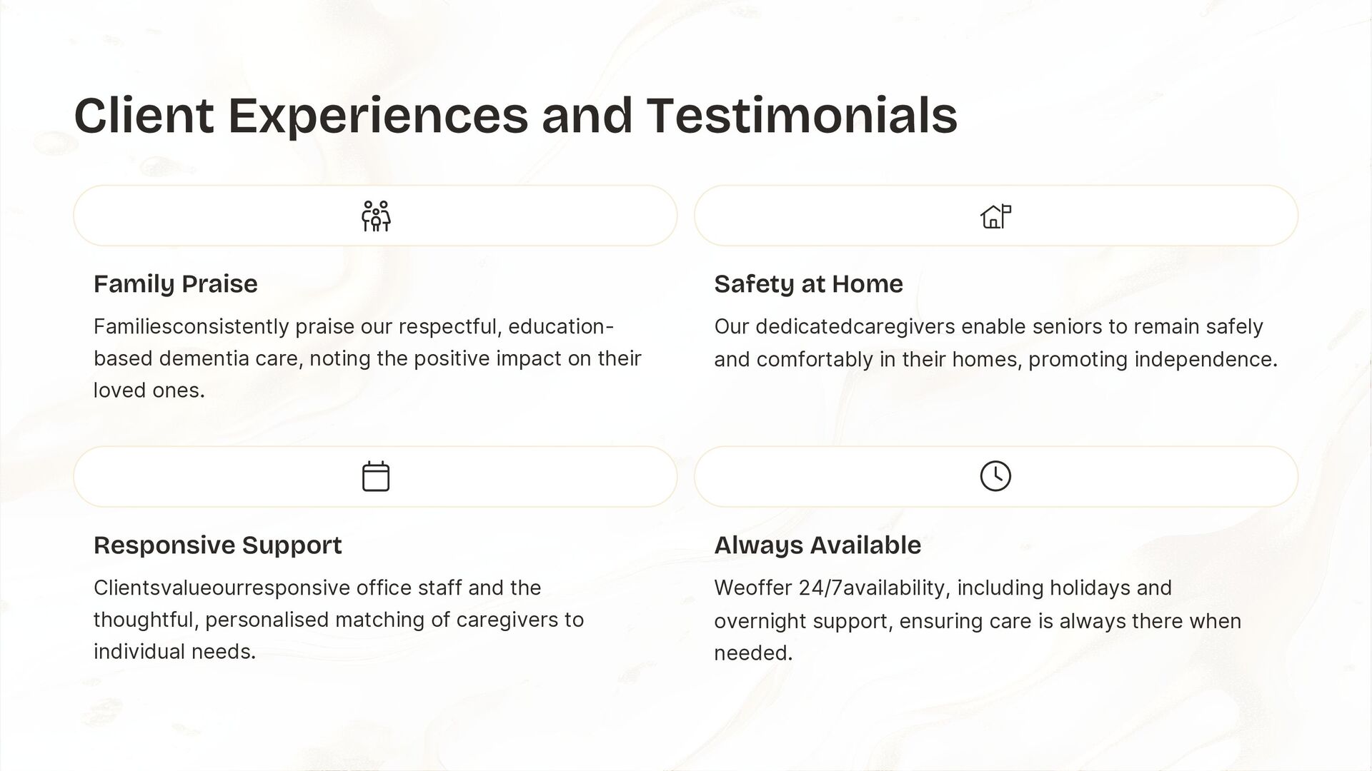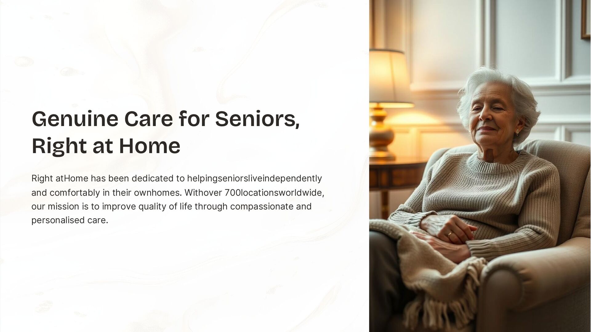 Echte Pflege für Senioren Right at Home bedeutet einfühlsame, respektvolle Unterstützung mit Wärme und Erfahrung. Wir helfen älteren Menschen dabei, sicher, komfortabel und unabhängig an dem Ort zu leben, den sie am besten kennen - in ihrem eigenen Zuhause.