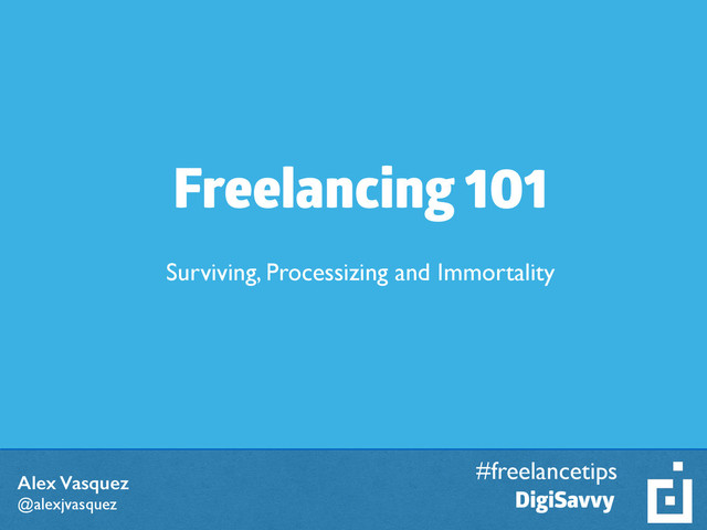 #freelancetips • Get a Website Up • WordPress.org • SquareSpace • Wix • Network • Related Business or Interest Meetups • Chambers of Commerce • Share Your Knowledge • Volunteer to speak at a related event • Create something worth talking about • Always be willing to help others