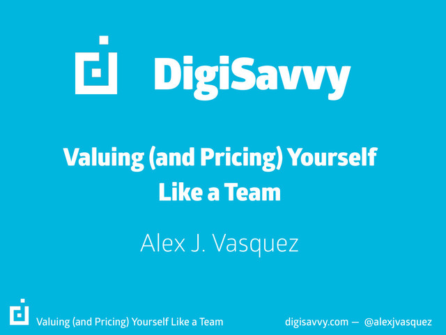 hoops before talking to them. In fact, I won’t… • Chat on the phone • Do in-person meetings digisavvy.com — @alexjvasquez Valuing (and Pricing) Yourself Like a Team Qualify Prospects