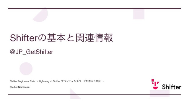 Shifterͷجຊͱؔ࿈ใ Shifter Beginners Club ʙ Lightning ͱ Shifter ͰϥϯςΟϯάϖʔδΛ࡞Ζ͏ͷձ ʙ