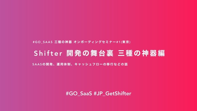 ମ ੍ ɺ Ω ϟ ο γ ϡ ϑ ϩ ʔ ͷ Ҡ ߦ ͳ Ͳ ͷ ࿩ # G O _ S A A S ࡾ छ ͷ ਆ ث Φ ϯ Ϙ ʔ σΟ ϯ άη ϛ φ ʔ # 1 ( ౦ ژ ) S h i f t e r ։ ൃ ͷ ෣ ୆ ཪ ࡾ छ ͷ ਆ ث ฤ #GO_SaaS #JP_GetShifter