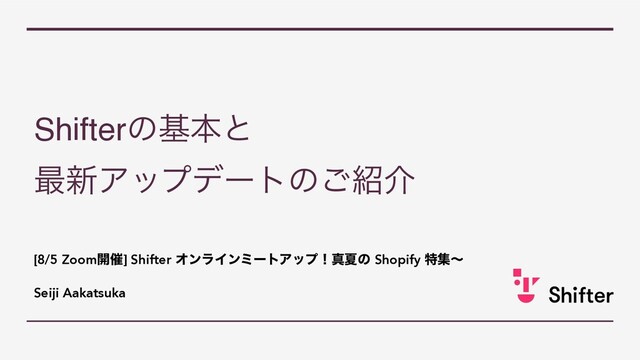 Shifterͷجຊͱ ࠷৽Ξοϓσʔτͷ͝հ [8/5 Zoom։࠵] Shifter ΦϯϥΠϯϛʔτΞοϓʂਅՆͷ Shopify ಛूʙ Seiji Aakatsuka