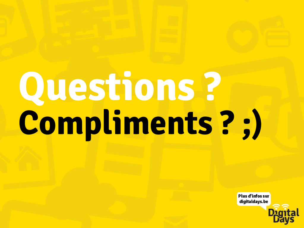 but • Veillez à ce que ce soit facile à scanner • D’abord le contenu le + important • Utilisez des bullet points (texte structuré) Plus d’infos sur digitaldays.be