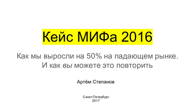 Кейс МИФа 2016 Как мы выросли на 50% на падающем