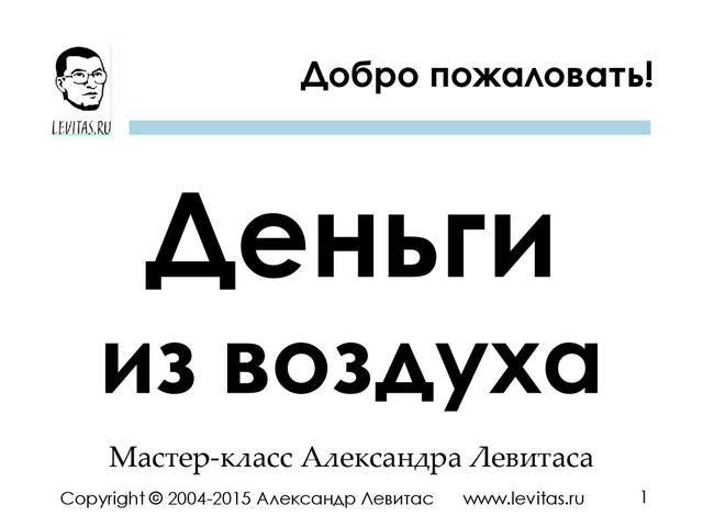 Левитас? • Консультант, наставник, бизнес-тренер • Эксперт по партизанскому маркетингу • Три школы маркетинга - .RU, .US, .IL • Израиль — без пиджака и галстука • «Что?Где?Когда?» и боевые искусства • «Характер скверный. Не женат»