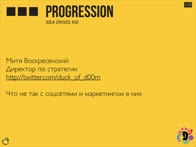 Митя Воскресенский Директор по стратегии в Progression http://twitter.com/duck_of_d00m 70/70
