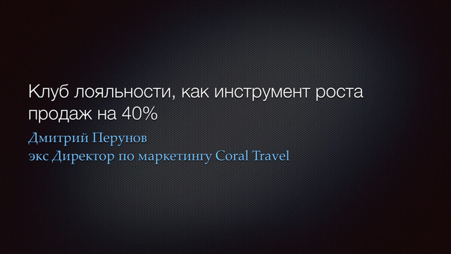 Клуб лояльности, как инструмент роста продаж на 40% Дмитрий Перунов