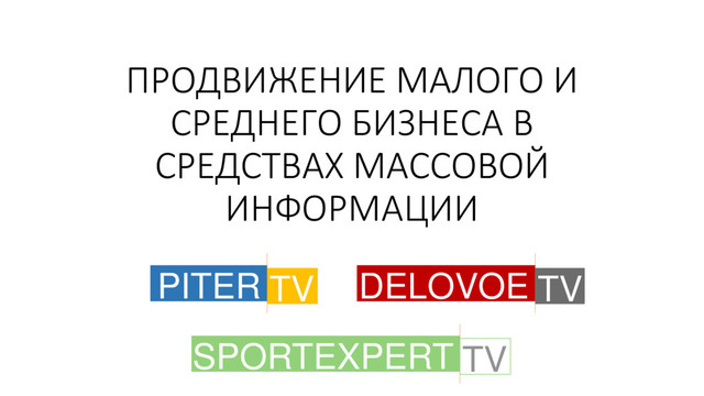 размещать новости вашей компании в СМИ. Интеграция с агрегаторами новостей yandex.news и google.news. Бесплатное размещение ссылки на ваш сайт. ВИДЕО ПРЕЗЕНТАЦИЯ БИЗНЕСА Видео - лучший способ, чтобы показать и рассказать о вашем бизнесе. Помимо съемки вы получаете размещение на сайте Delovoe.TV или Piter.TV, с ежемесячной качественной аудиторией более 1 500 000 человек. НОВОСТИ ВАШЕЙ КОМПАНИИ В СМИ Простой способ рассказать о продукте или услуге. Специальное предложение для малого бизнеса. НОВОСТЬ С ВАШИМ ВИДЕО Размещение пресс-релиза с видеоматериалом. Наш плеер интегрирован в агрегаторы новостей yandex.news и google.news. А так же доступен для прямой вставки в vk.com