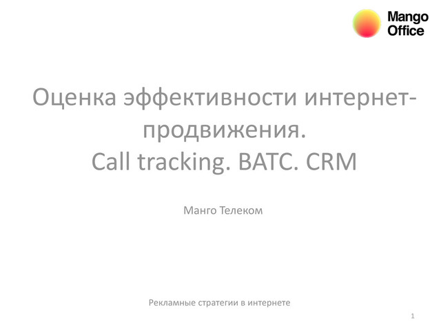 рекламных каналов подключаются дополнительные телефонные номера под каждый канал – SEO, Контекст, Баннеры, SMM, POSM… Онлайн подключается необходимое количество номеров: 1. XXX-XX-X1 (SEO) 2. XXX-XX-X2 (Контекст) 3. XXX-XX-X3 (Баннеры) 4. XXX-XX-X4 (SMM) WEB-сайт Скрипт на WEB (подмена номеров) 1 час 1-3 дня Онлайн Установка и настройка скрипта подмены номеров на WEB силами компании – владельца сайта Анализ развернутой статистики по всем звонкам Меньше чем за неделю возможно реализовать инструмент, который поможет выявить эффективные и неэффективные каналы, и сэкономить до 30% бюджета на рекламу Личный кабинет ВАТС Манго Офис