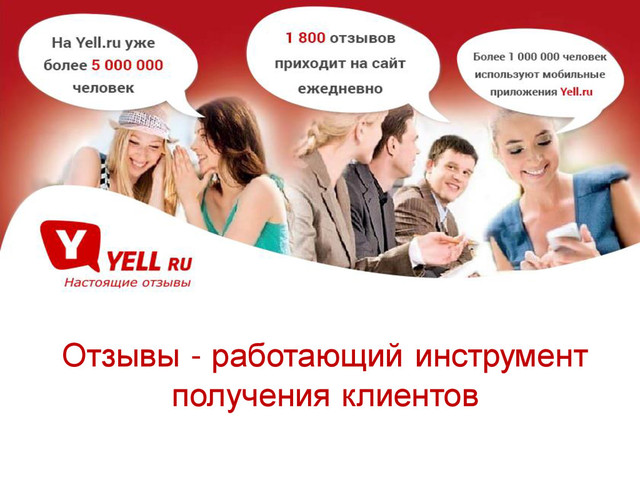 негативный отзыв от лица компании 2. Проинформируйте его о дальнейших действиях по устранению проблемы 3. Пришлите на Yell.ru благодарственные письма от ваших партнеров, мы добавим их к вашей странице 4. Предложите довольным клиентам написать о вас отзывы на Yell.ru 5. Сделайте свою страницу красочной и интересной