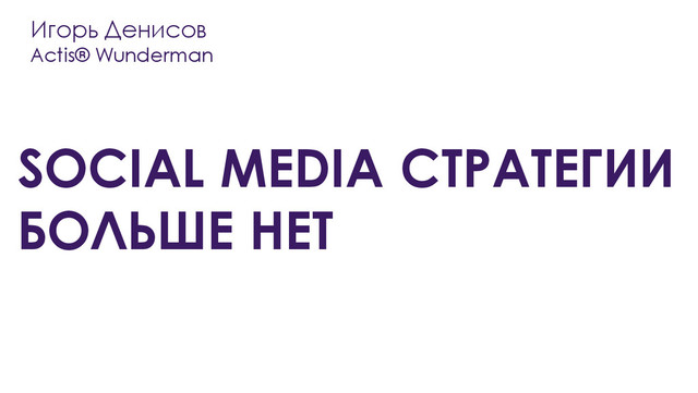 Игорь Денисов Actis® Wunderman SOCIAL MEDIA СТРАТЕГИИ БОЛЬШЕ НЕТ