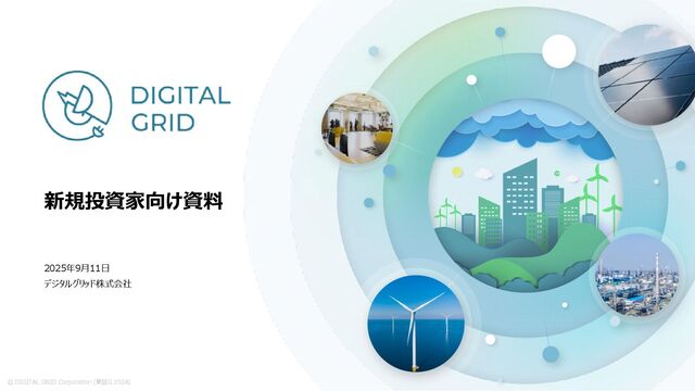 デジタルグリッド株式会社(DIGITAL GRID Corporation) 会社所在地 東京都港区赤坂1丁目7−1 赤坂榎坂ビル 3階 設立 2017年10月 資本金 1,139百万円(2025年7月末時点) 代表者 豊田 祐介 従業員数 82名*1(2025年7月末時点役員派遣除く) 子会社 デジタルグリッドアセットマネジメント株式会社 事業概要 電力及び環境価値取引プラットフォーム「DGP(デジタルグリッドプラット フォーム)」の運営、分散型電源のアグリゲーションサービス及び脱炭素関 連学習コンテンツの提供 認定 ・CDP認定再エネプロバイダー(2021~5年連続) ・SBT認定取得(2021) 金融機関 0.58% 金融商品取引業者 7% その他の法人 48% 外国法人 9.6% 外国個人 0.04% 個人その他 35% 株式情報 所有株式数 (単元) 所有株式数の 割合(%) 金融機関 375 0.58 金融商品取引業 者 4,285 6.64 その他の法人 30,733 47.64 外国法人 6,194 9.60 外国個人 28 0.04 個人その他 22,899 35.49 政府及び地方公 共団体 0 0.00 大株主情報 所有株式数 (単元) 所有株式数の 割合(%) 所有株式数 (単元) 所有株式数の 割合(%) 株式会社 東芝 833,320 12.91 東急不動産 株 式会社 250,000 3.87 豊田 祐介 337,000 5.22 フーバー・インベスト メント 株式会社 233,330 3.61 株式会社 FD 333,430 5.16 近清 拓馬 225,000 3.48 WIL FUND Ⅱ. L. P. 333,400 5.16 個人株主 219,200 3.39 合同会社 OTS 250,000 3.87 MSIP CLIENT SECURITIES 190,500 2.95 会社概要 株式情報(2025/7/31)