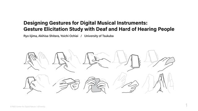 Ryo Iijima, Akihisa Shitara, and Yoichi Ochiai. 2022. Designing Gestures for Digital Musical Instruments: Gesture Elicitation Study with Deaf and Hard of Hearing People. In the 24th International ACM SIGACCESS Conference on Computers and Accessibility (ASSETS ’22). October 23–26, 2022, Athens, Greece, 8 pages. https://doi.org/10.1145/3517428.3544828