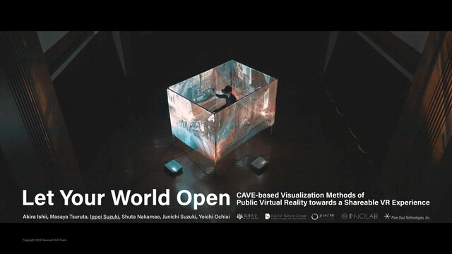 1. 1Copyright 2019 ReverseCAVE Team. Let Your World Open CAVE-based Visualization Methods of Public Virtual Reality towards a Shareable VR Experience Akira Ishii, Masaya Tsuruta, Ippei Suzuki, Shuta Nakamae, Junichi Suzuki, Yoichi Ochiai