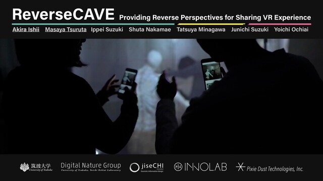 24. ReverseCAVE Providing Reverse Perspectives for Sharing VR Experience Akira Ishii Masaya Tsuruta Ippei Suzuki Shuta Nakamae Tatsuya Minagawa Junichi Suzuki Yoichi Ochiai University of Tsukuba , Yoichi Ochiai Laboratory Team