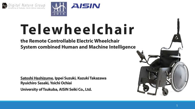 1. Telewheelchair the Remote Controllable Electric Wheelchair System combined Human and Machine Intelligence 1 Satoshi Hashizume, Ippei Suzuki, KazukiTakazawa Ryuichiro Sasaki,Yoichi Ochiai University ofTsukuba, AISIN Seiki Co.,Ltd.