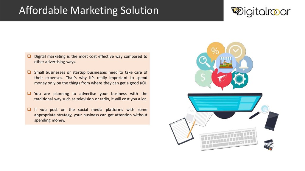 Digital marketing is the most affordable effective way for small businesses. You can reach potential customers via SEO, SMO PPC in a small budget as well. visit today - https://www.digitalrooar.com.au