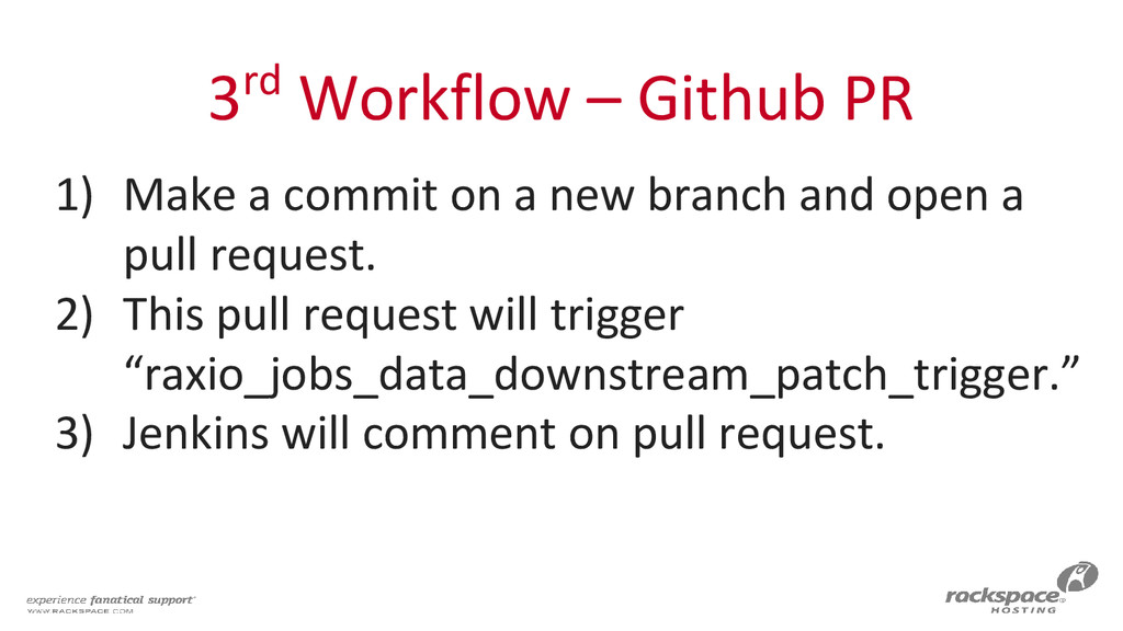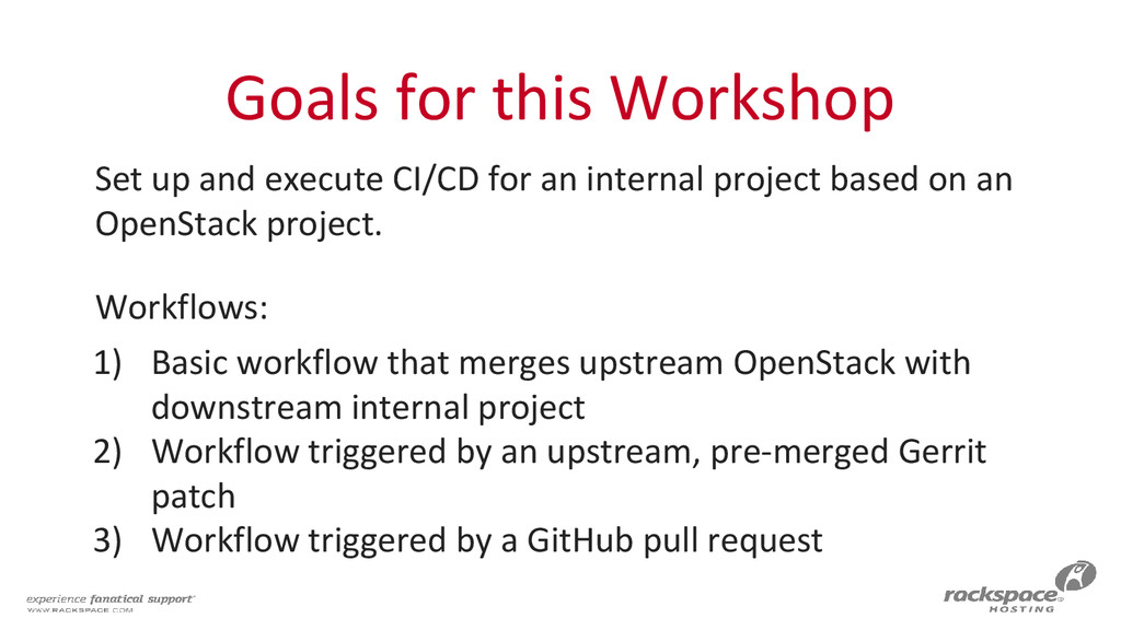 an internal project based on an OpenStack project. Workflows: 1) Basic workflow that merges upstream OpenStack with downstream internal project 2) Workflow triggered by an upstream, pre-merged Gerrit patch 3) Workflow triggered by a GitHub pull request