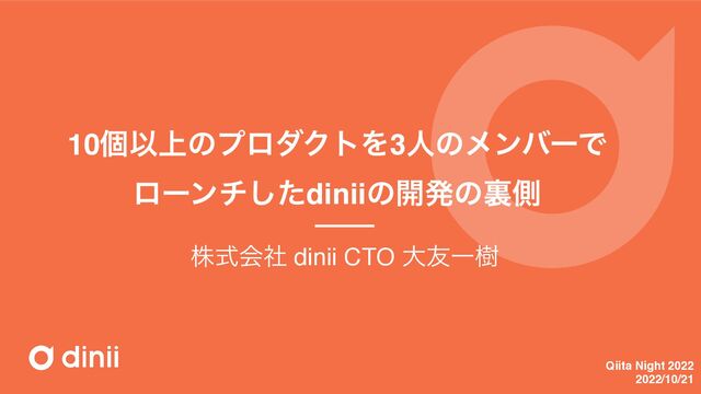 10ݸҎ্ͷϓϩμΫτΛ3ਓͷϝϯόʔͰ ϩʔϯνͨ͠diniiͷ։ൃͷཪଆ גࣜձࣾ dinii CTO େ༑Ұथ Qiita Night 202 2