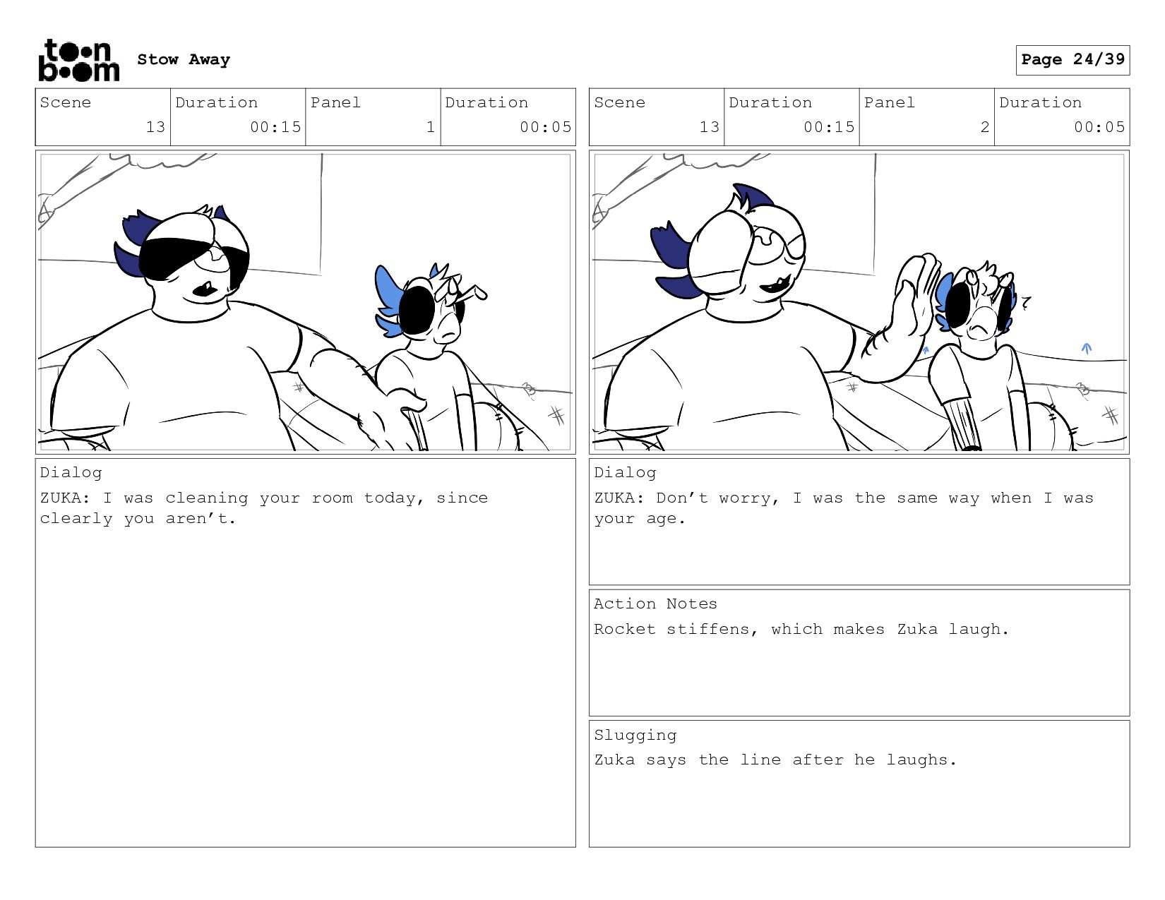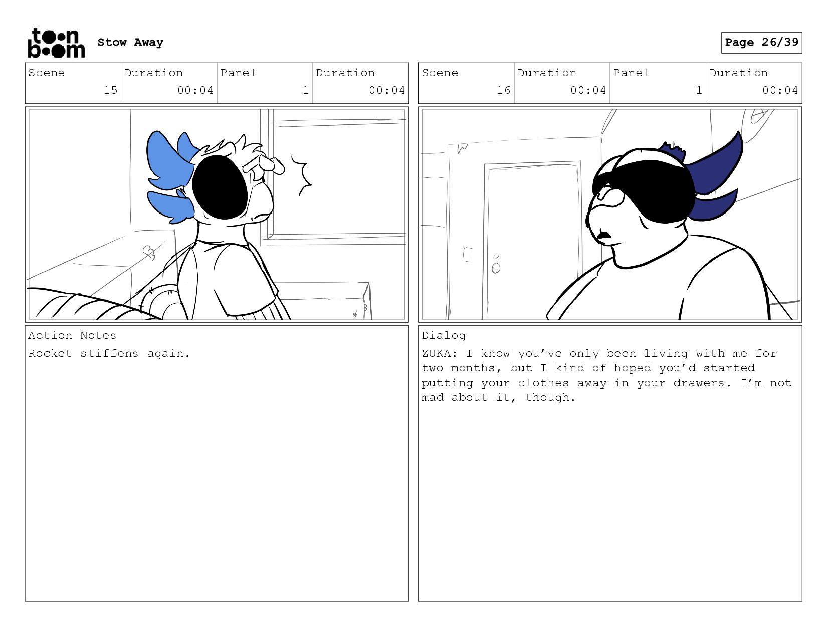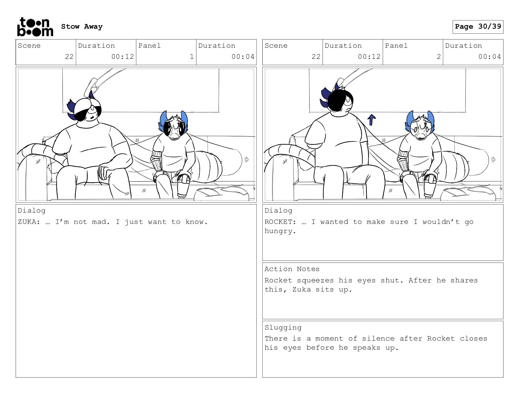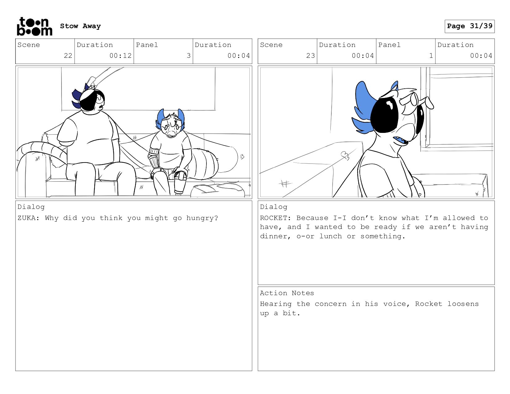 War veteran Zuka is cleaning the room of his recently adopted son, Rocket, when he finds a stash of food from the kitchen hidden in one of his dresser drawers. Concerned this might be food hoarding behavior, he decides to ask Rocket why he’s doing this.