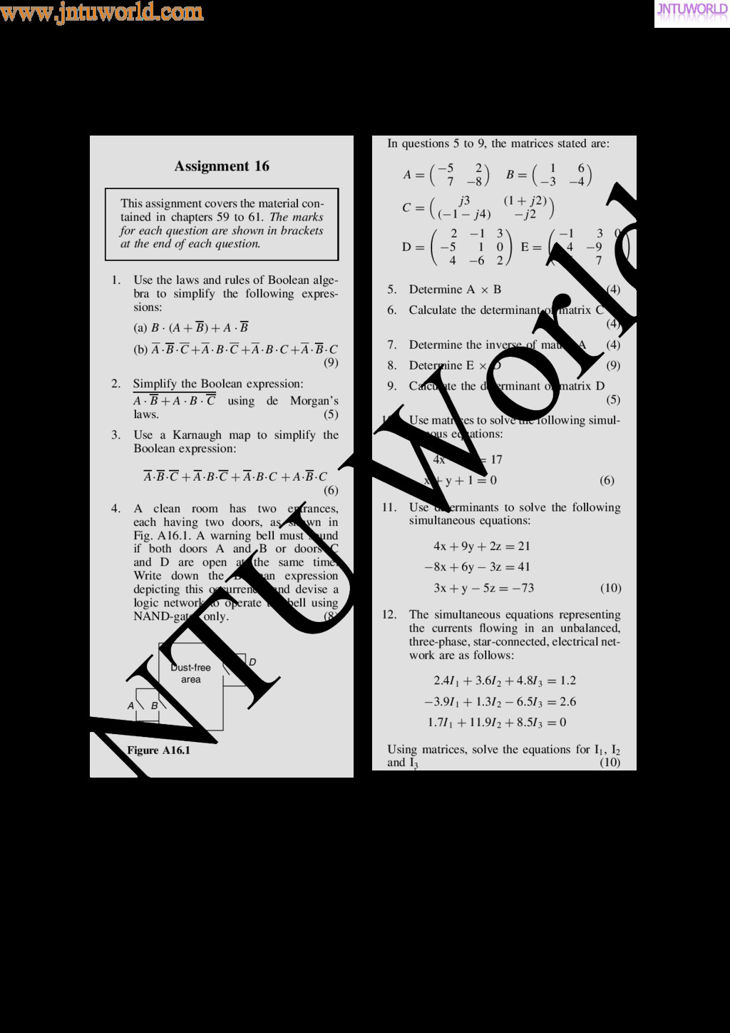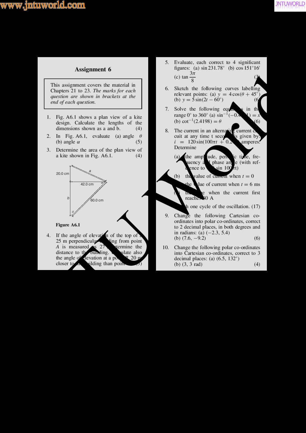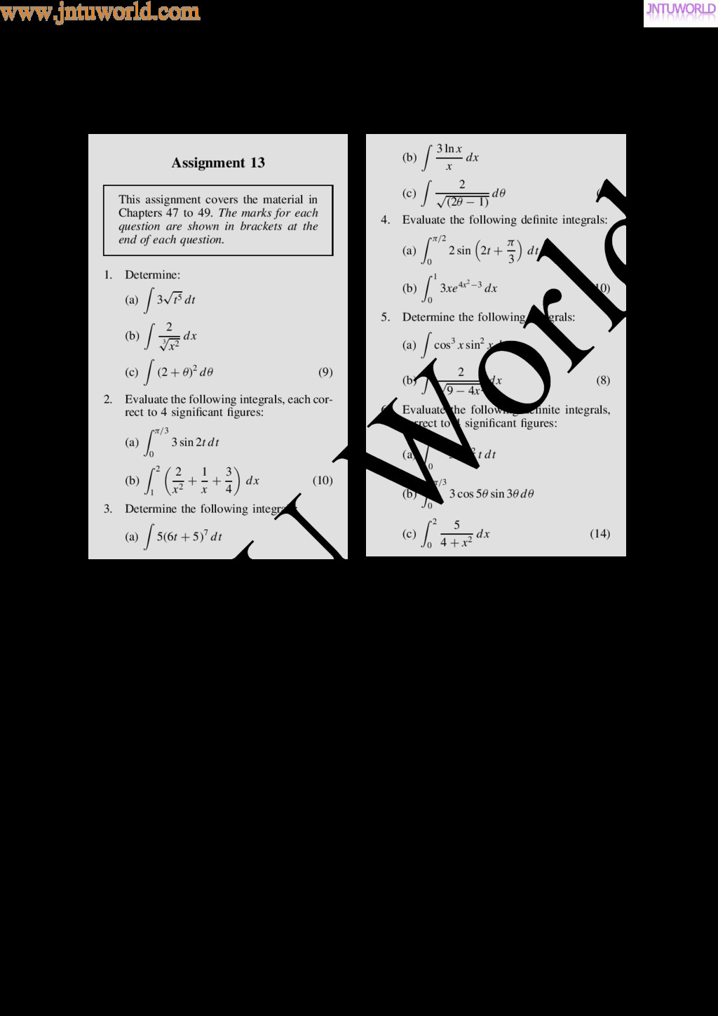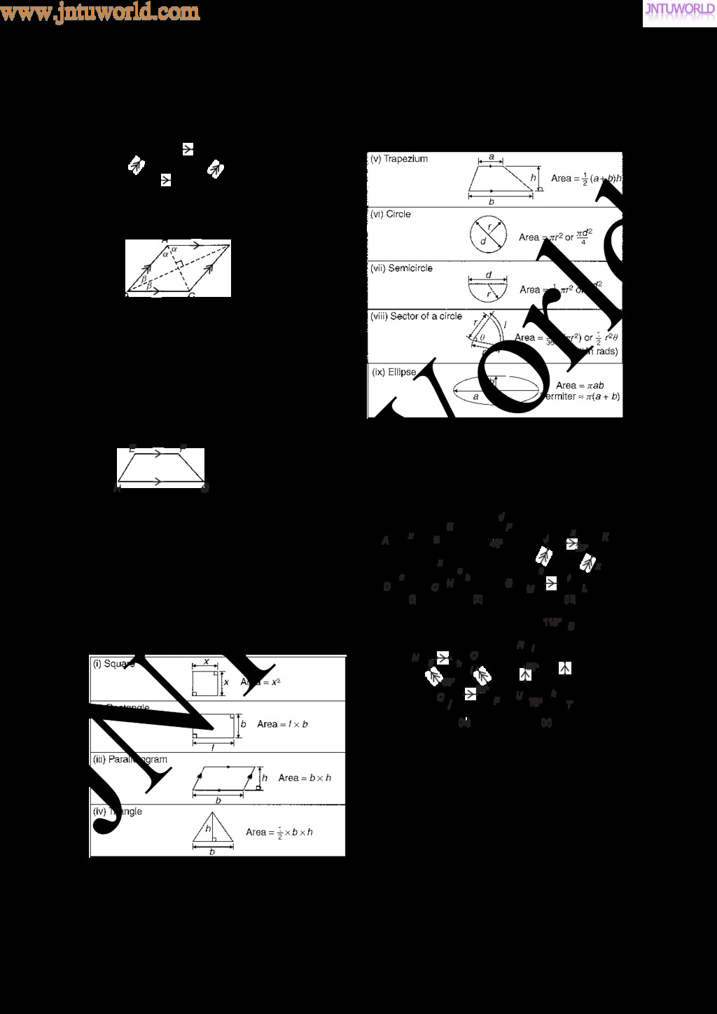 central tendency A single value, which is representative of a set of values, may be used to give an indication of the gen- eral size of the members in a set, the word ‘average’ often being used to indicate the single value. The statistical term used for ‘average’ is the arithmetic mean or just the mean. Other measures of central tendency may be used and these include the median and the modal values. 37.2 Mean, median and mode for discrete data Mean The arithmetic mean value is found by adding together the values of the members of a set and dividing by the number of members in the set. Thus, the mean of the set of numbers: f4, 5, 6, 9g is: 4 C 5 C 6 C 9 4 , i.e. 6 In general, the mean of the set: fx1, x2, x3, . . . , xn g is x D x1 C x2 C x3 C Ð Ð Ð C xn n , written as x n where is the Greek letter ‘sigma’ and means ‘the sum of’, and x (called x-bar) is used to signify a mean value. Median The median value often gives a better indication of the general size of a set containing extreme values. The set: f7, 5, 74, 10g has a mean value of 24, which is not really representative of any of the values of the members of the set. The median value is obtained by: (a) ranking the set in ascending order of magni- tude, and (b) selecting the value of the middle member for sets containing an odd number of members, or finding the value of the mean of the two middle members for sets containing an even number of members. For example, the set: f7, 5, 74, 10g is ranked as f5, 7, 10, 74g, and since it contains an even number of members (four in this case), the mean of 7 and 10 is taken, giving a median value of 8.5. Similarly, the set: f3, 81, 15, 7, 14g is ranked as f3, 7, 14, 15, 81g and the median value is the value of the middle member, i.e. 14. Mode The modal value, or mode, is the most commonly occurring value in a set. If two values occur with the same frequency, the set is ‘bi-modal’. The set: f5, 6, 8, 2, 5, 4, 6, 5, 3g has a modal value of 5, since the member having a value of 5 occurs three times. Problem 1. Determine the mean, median and mode for the set: f2, 3, 7, 5, 5, 13, 1, 7, 4, 8, 3, 4, 3g The mean value is obtained by adding together the values of the members of the set and dividing by the number of members in the set. Thus, mean value, x D 2 C 3 C 7 C 5 C 5 C 13 C 1 C7 C 4 C 8 C 3 C 4 C 3 13 D 65 13 D 5 To obtain the median value the set is ranked, that is, placed in ascending order of magnitude, and since the set contains an odd number of members the value of the middle member is the median value. Ranking the set gives: f1, 2, 3, 3, 3, 4, 4, 5, 5, 7, 7, 8, 13g www.jntuworld.com JN TU W orld