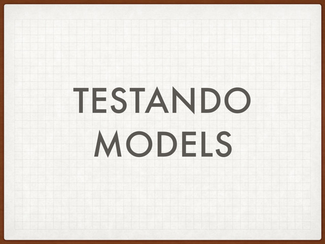 DIFICULDADE EM TESTAR MODELS • setup de ambiente de teste