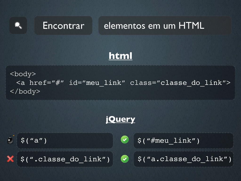 </body> $(“a”) $(“#meu_link”) $(“.classe_do_link”) html jQuery $(“a.classe_do_link”)